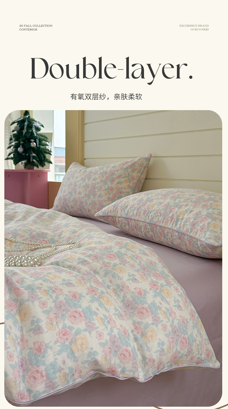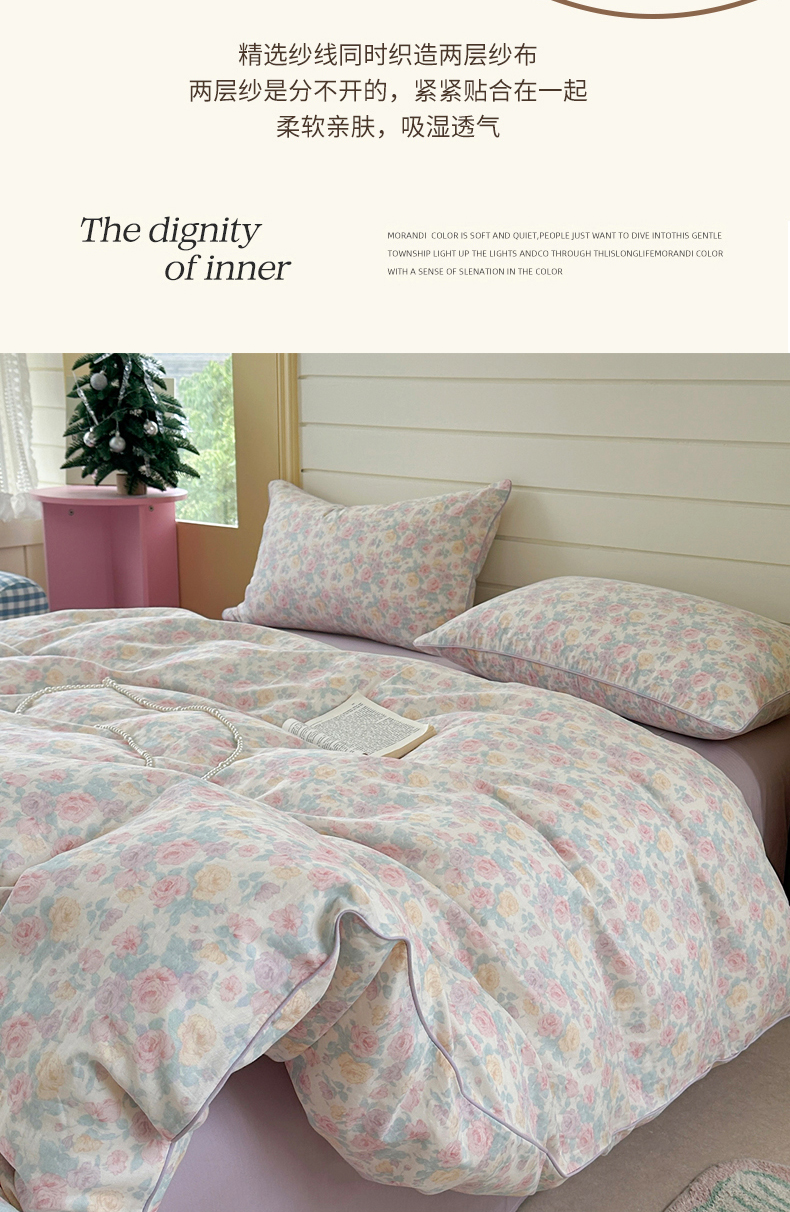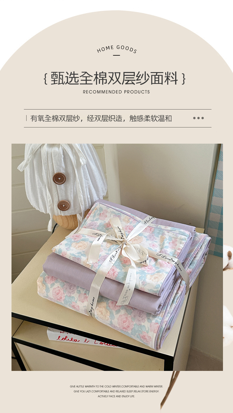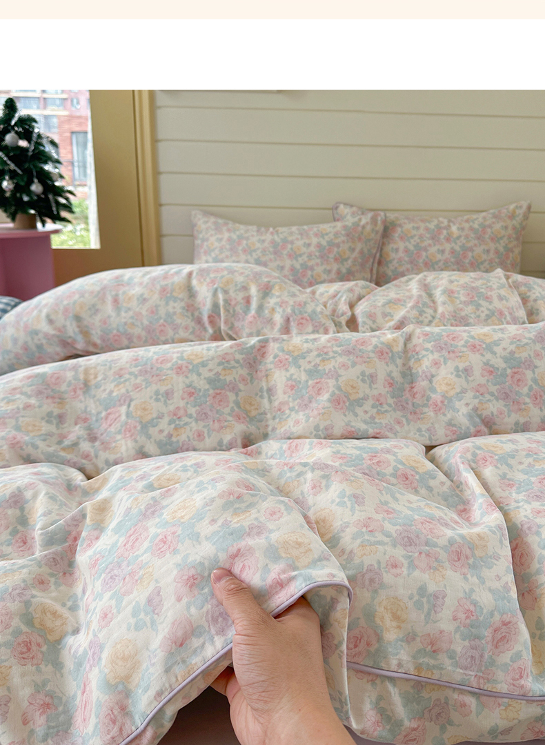 当前位置: 91家纺网 > 商品网购 > 床品套件 > 四件套 > 全棉普通四件套 > 麦伦家居 2025新品嵌绳款全棉双层纱四件套 嵌绳款-春意