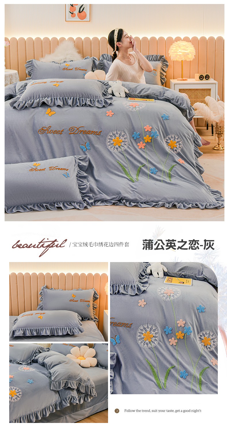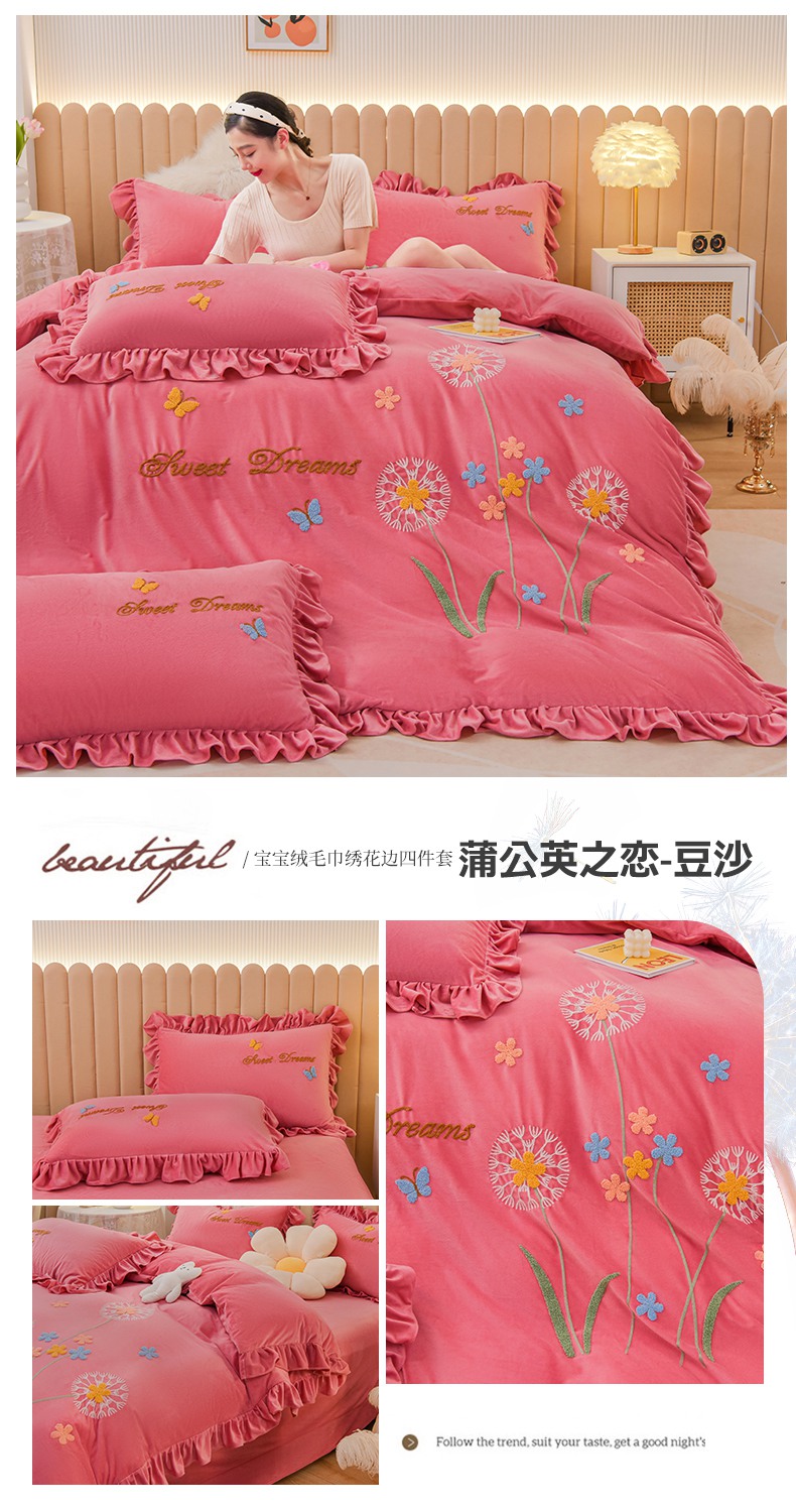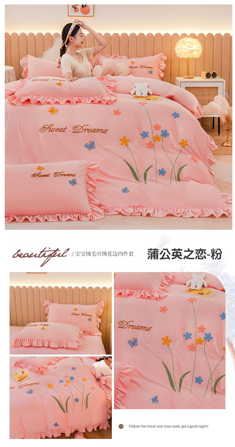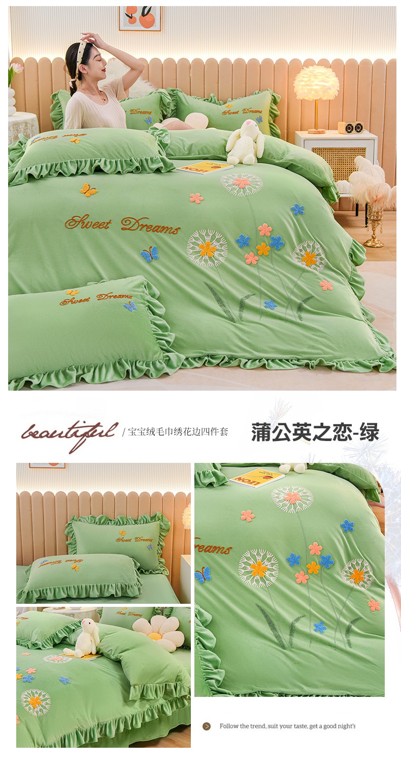 (总)唐人居 2025新款宝宝绒毛巾绣花边四件套-蒲公英之恋