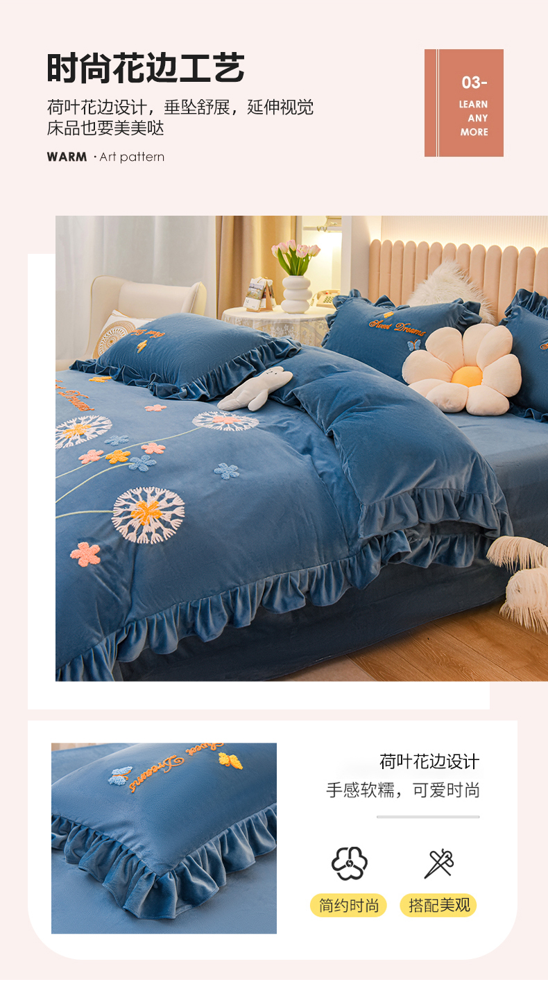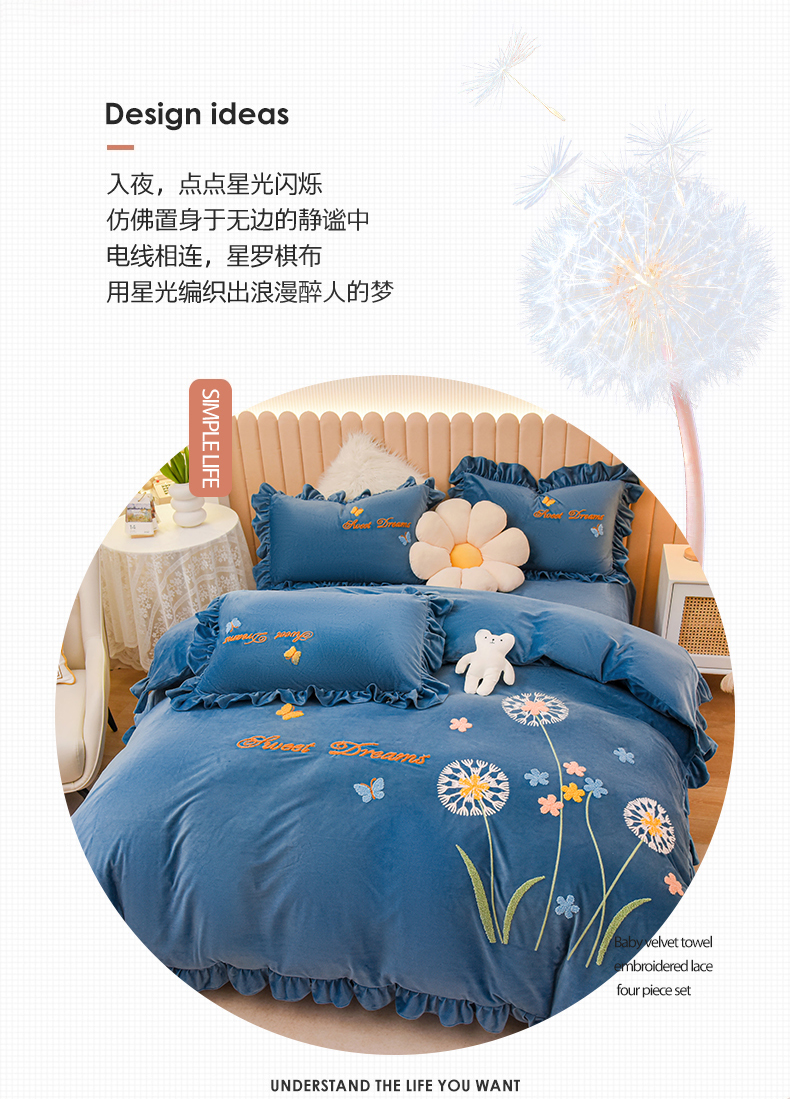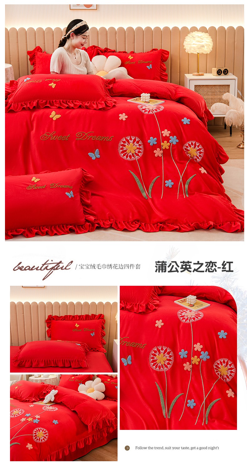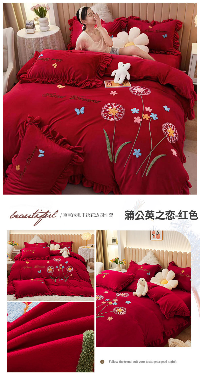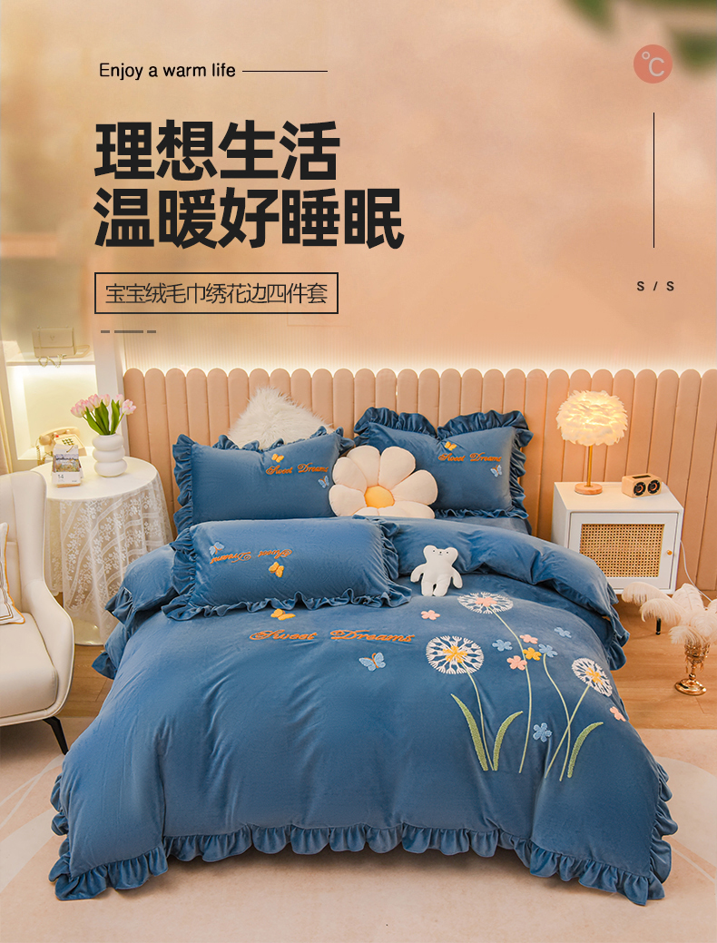 (总)唐人居 2025新款宝宝绒毛巾绣花边四件套-蒲公英之恋