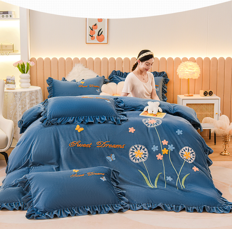 (总)唐人居 2025新款高克重牛奶绒立体绣花床盖四件套-芬芳,芬芳-浅紫,芬芳-草绿,芬芳-豆沙,芬芳-粉色,芬芳-暖橘,芬芳-浅蓝