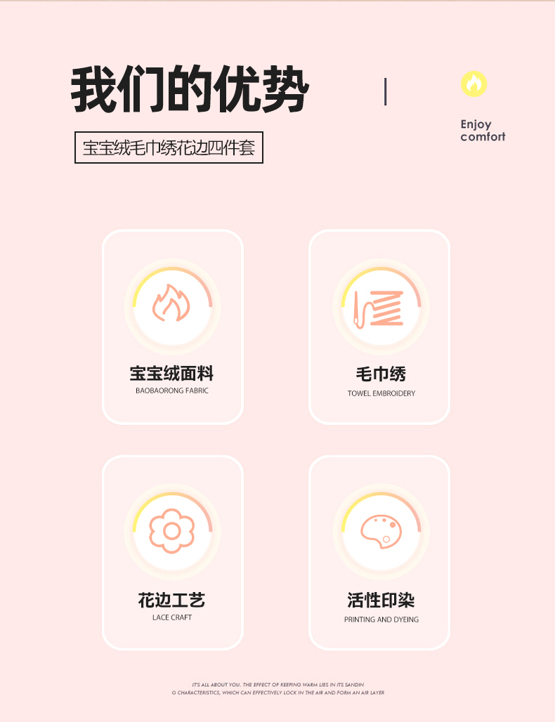 商品名称:(总)唐人居 2025新款宝宝绒毛巾绣花边四件套-蒲公英之恋