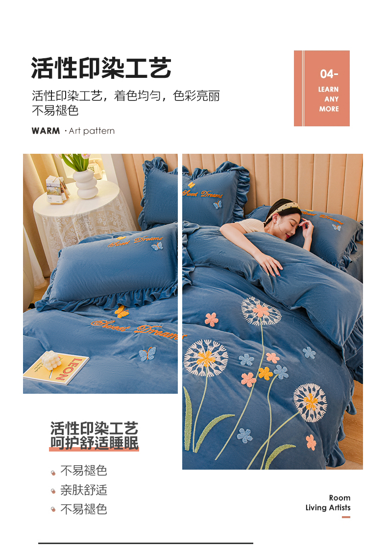(总)唐人居 2025新款加厚牛奶绒立体绣花四件套-花漾,花漾-暖橘,花漾-草绿,花漾-豆沙,花漾-粉色,花漾-浅蓝,花漾-浅紫