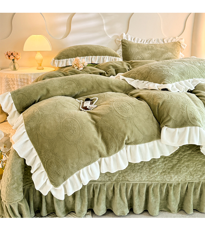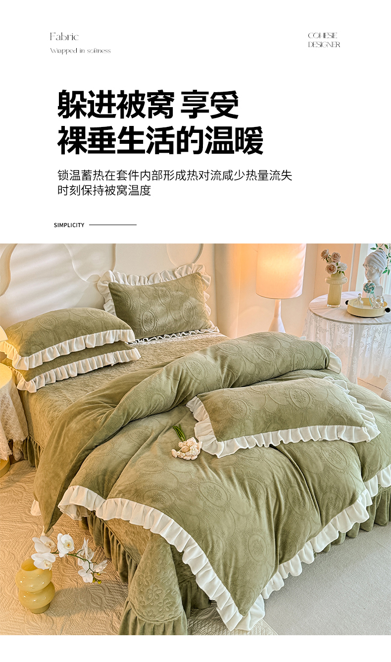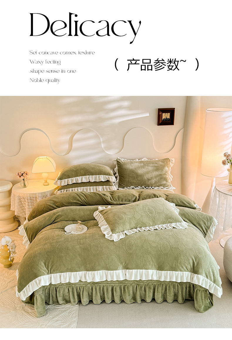 商品名称:唐人居 2025新款雕花牛奶绒花边款四件套--摩卡庄园系列 摩卡庄园-水兰