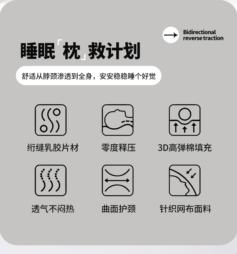 商品名称:永乐枕芯 2025新款乳胶反牵引枕枕头枕芯 灰白低枕800克