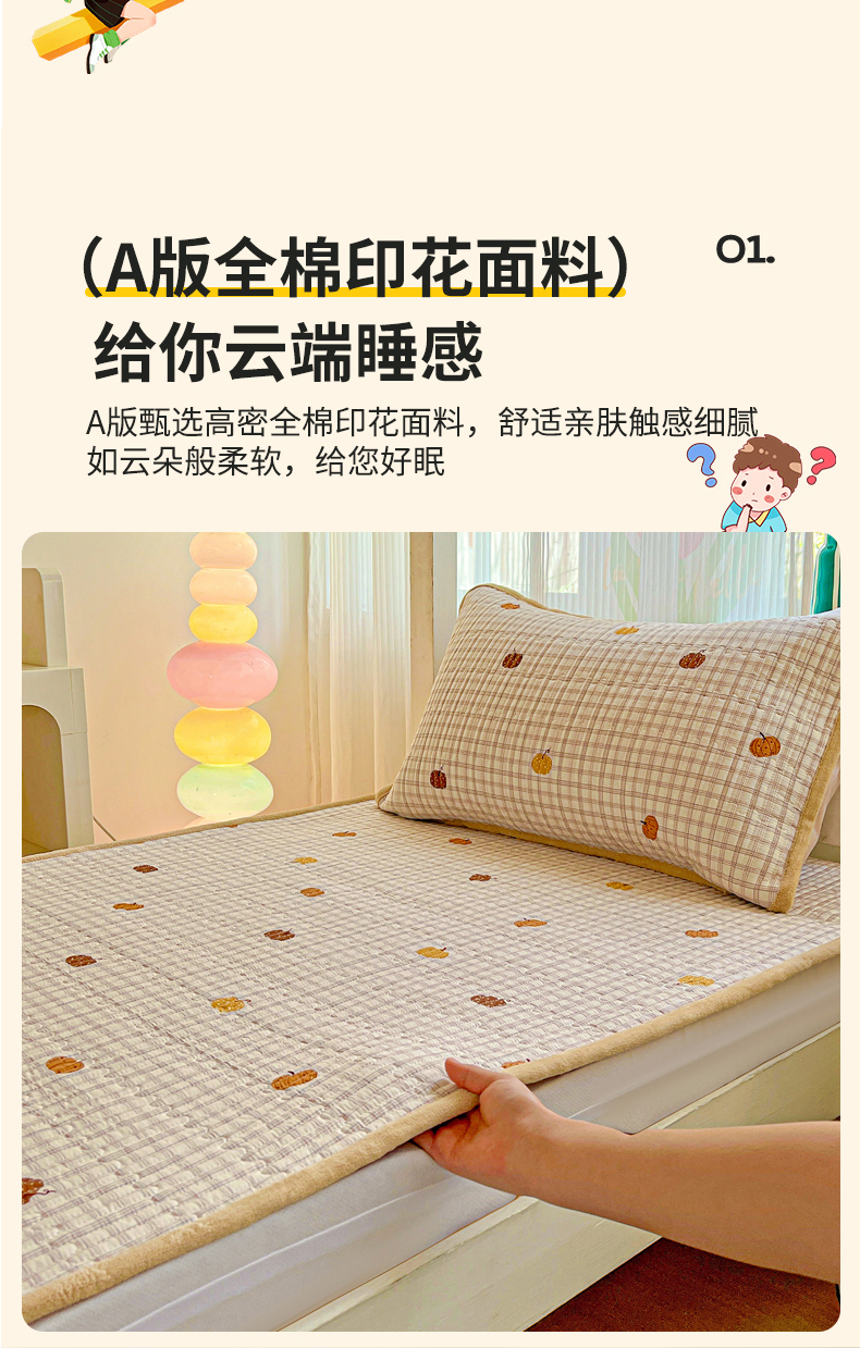 当前位置: 91家纺网 > 商品网购 > 床垫/床褥 > 普通床垫 > 恒尚居 2025新款纯棉牛奶绒学生床垫 双面两用夹棉床单床垫-秋冬款 四季通用 南瓜奇趣-A纯棉-B牛奶绒