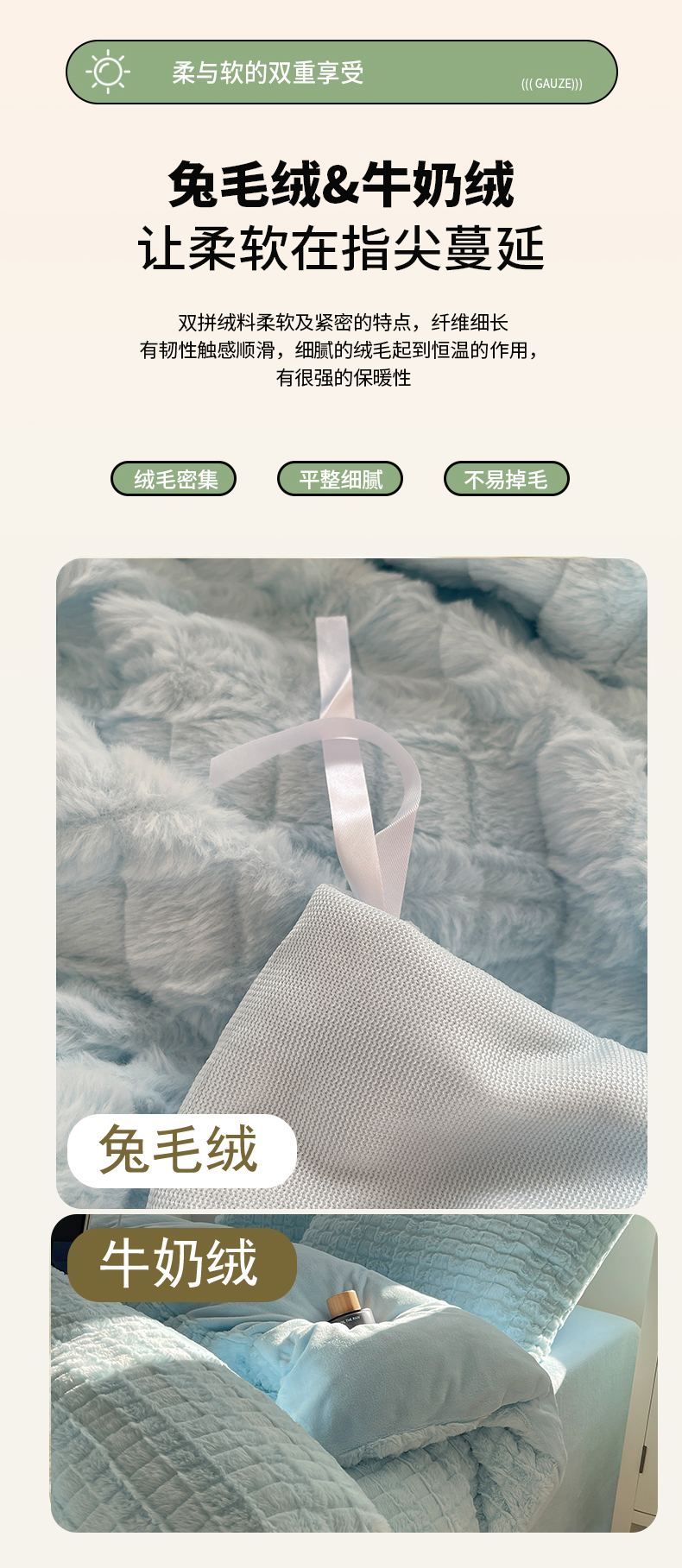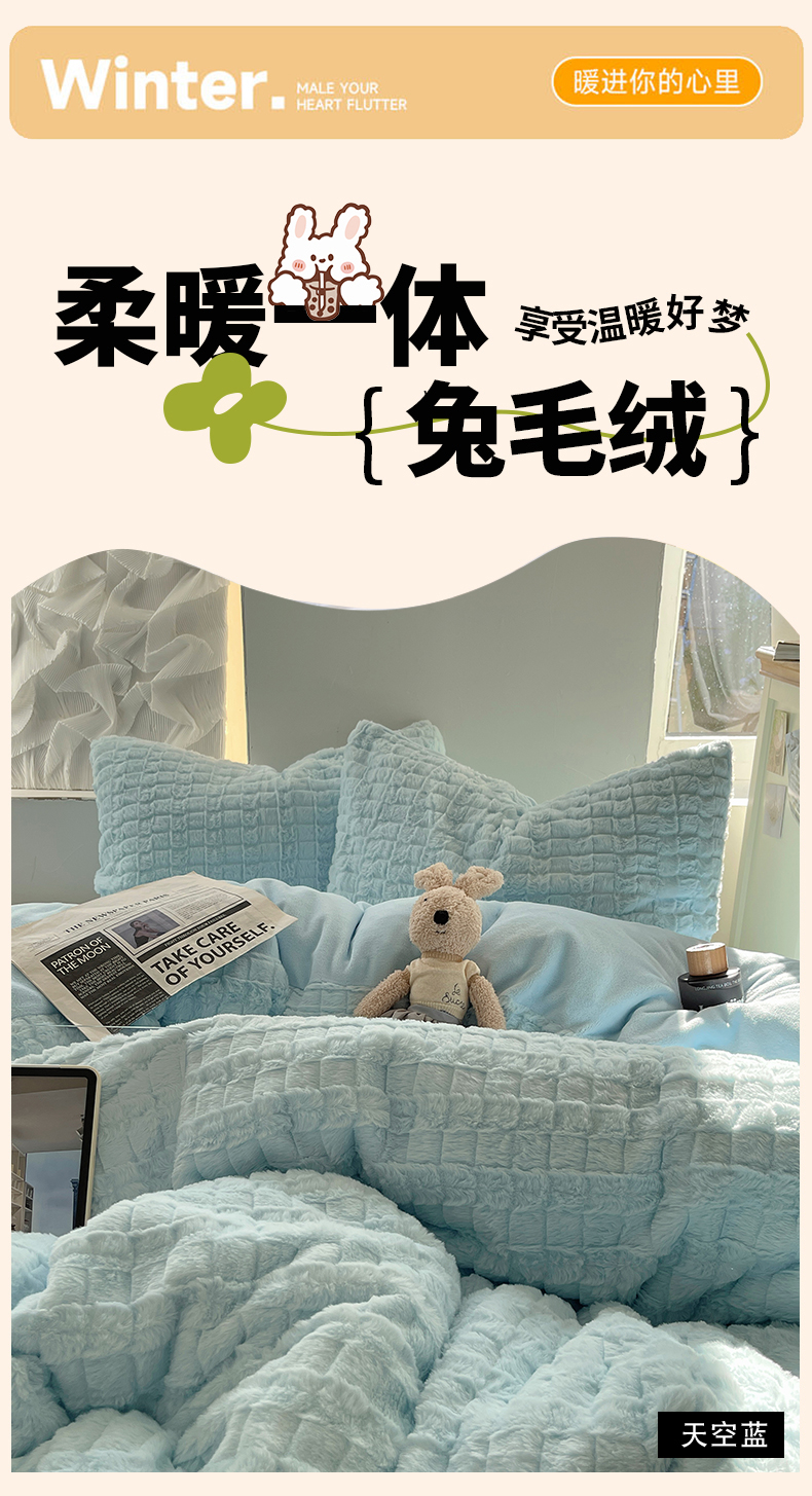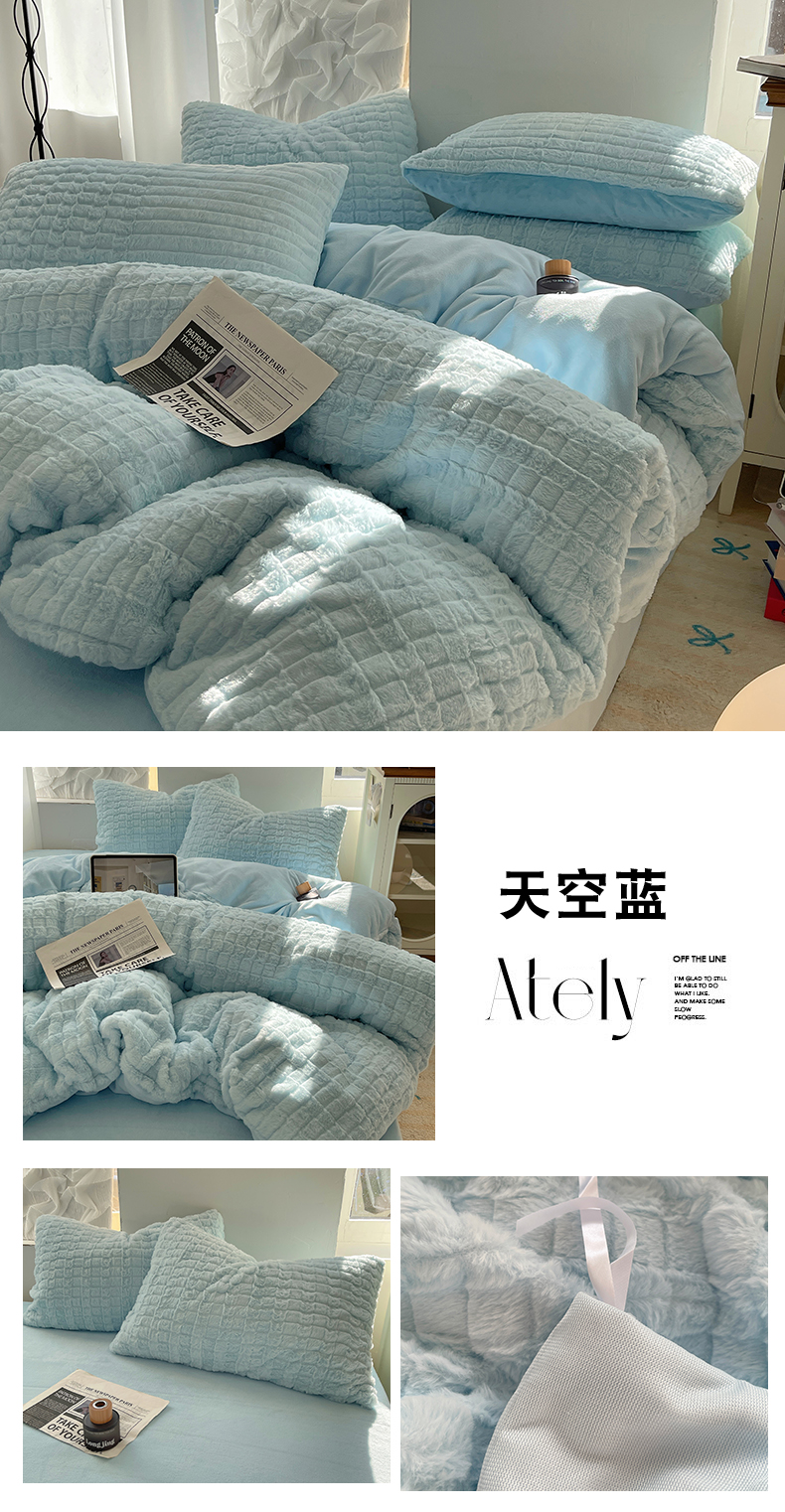 当前位置: 91家纺网 > 商品网购 > 床品套件 > 四件套 > 牛奶绒四件套 > 金爱家 2025新款全消光牛奶绒A类纯色獭兔毛绒立体牛奶绒四件套 天空蓝