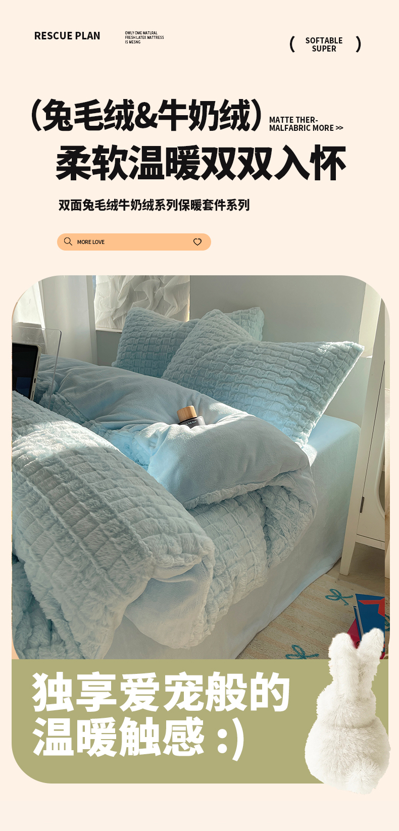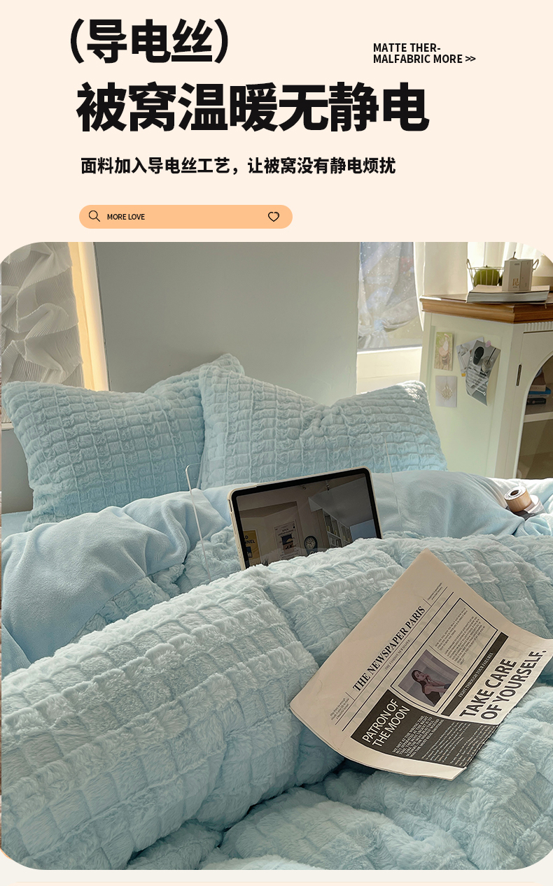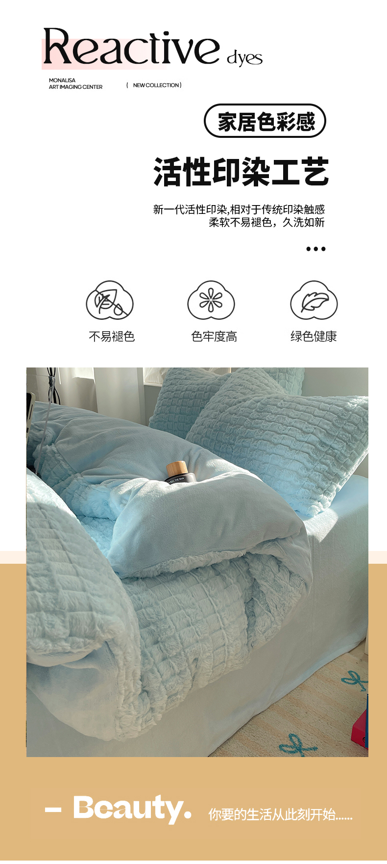 当前位置: 91家纺网 > 商品网购 > 床品套件 > 四件套 > 牛奶绒四件套 > 金爱家 2025新款全消光牛奶绒A类纯色獭兔毛绒立体牛奶绒四件套 天空蓝