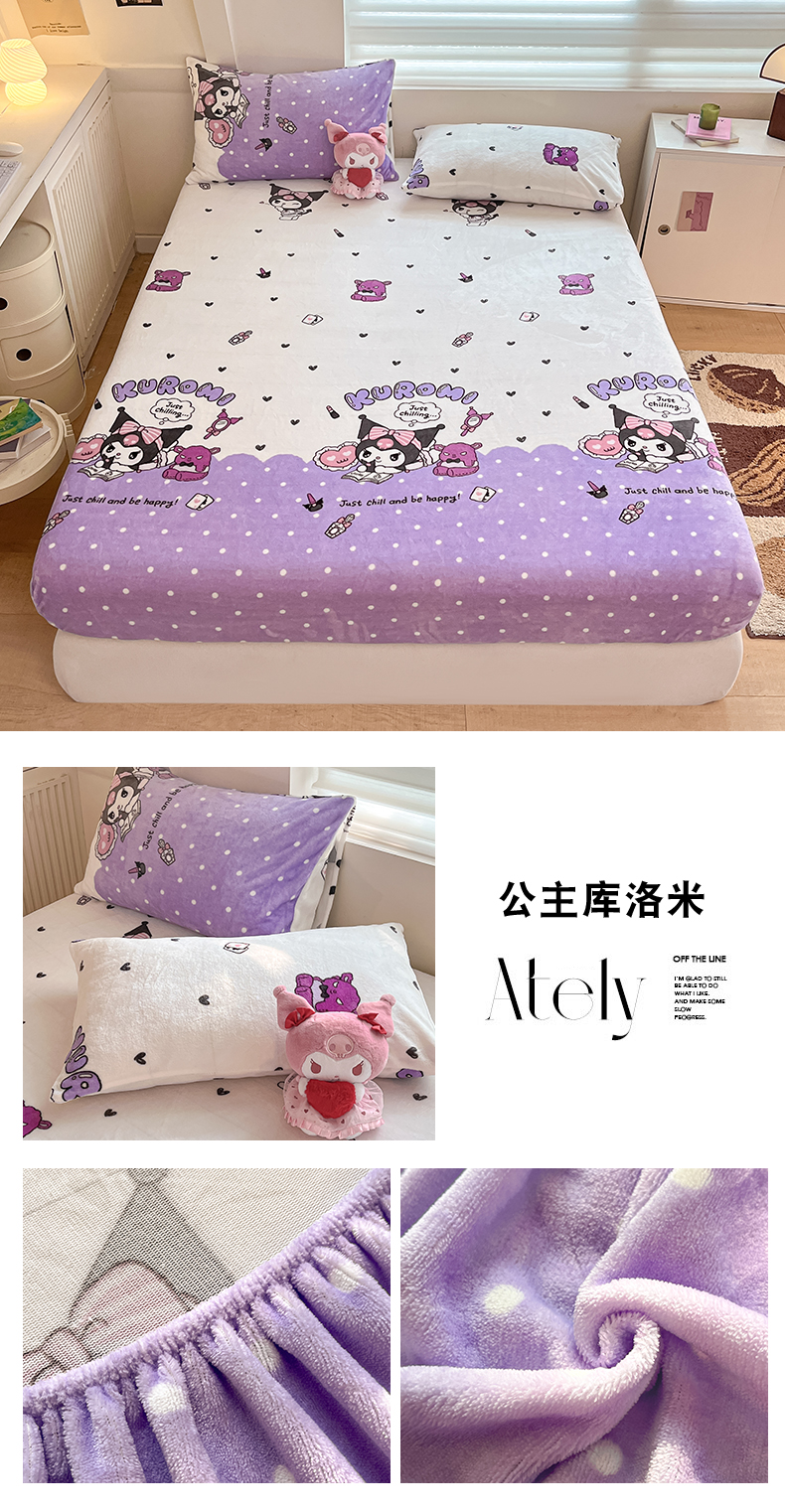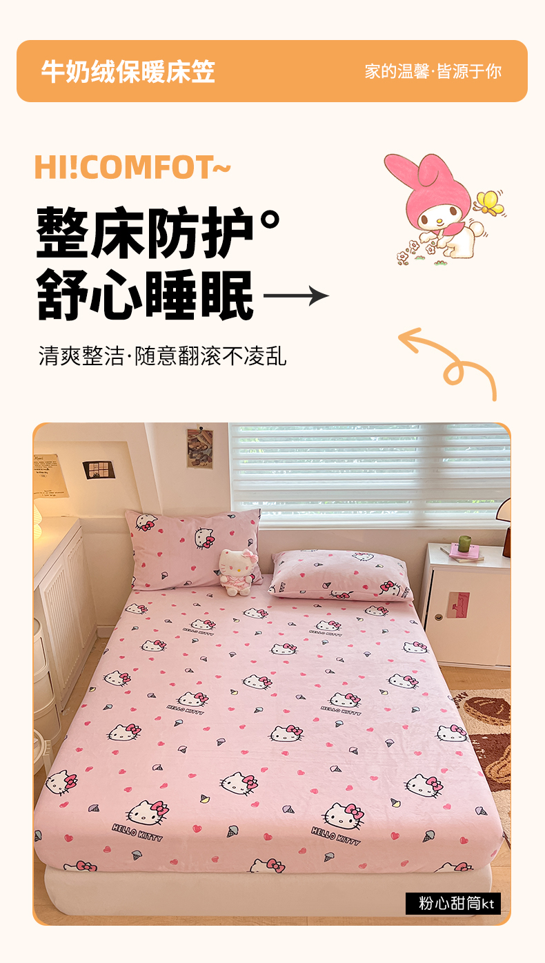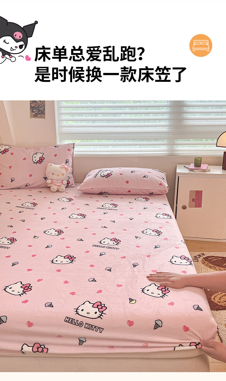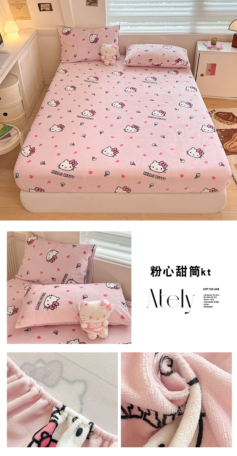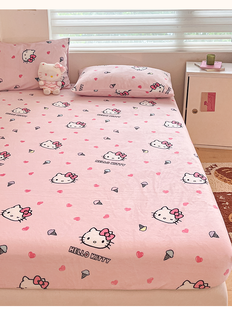 金爱家 2025新款三丽鸥牛奶绒单品系列床单床笠单件 绒-X粉心甜筒kt