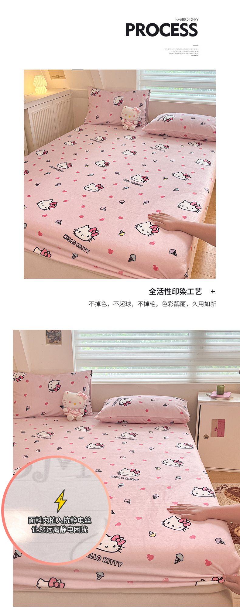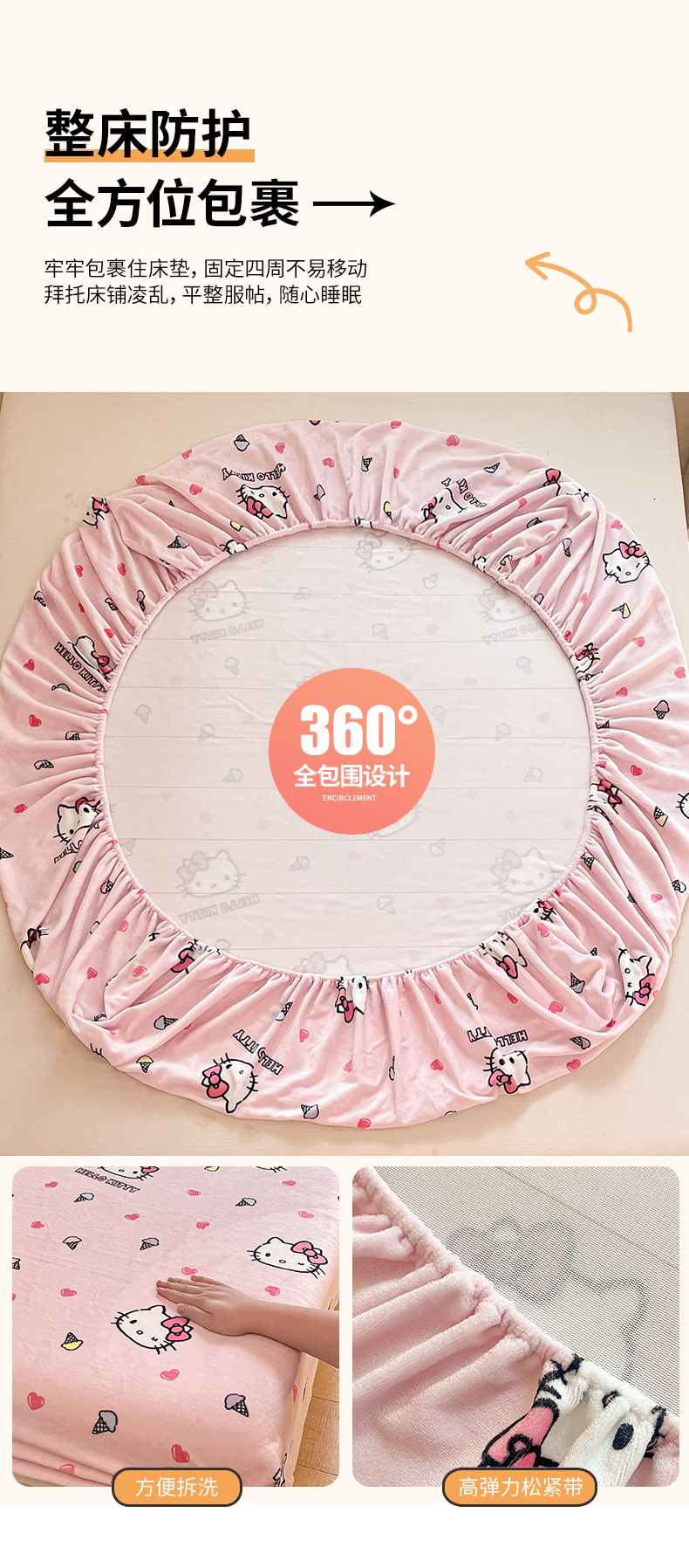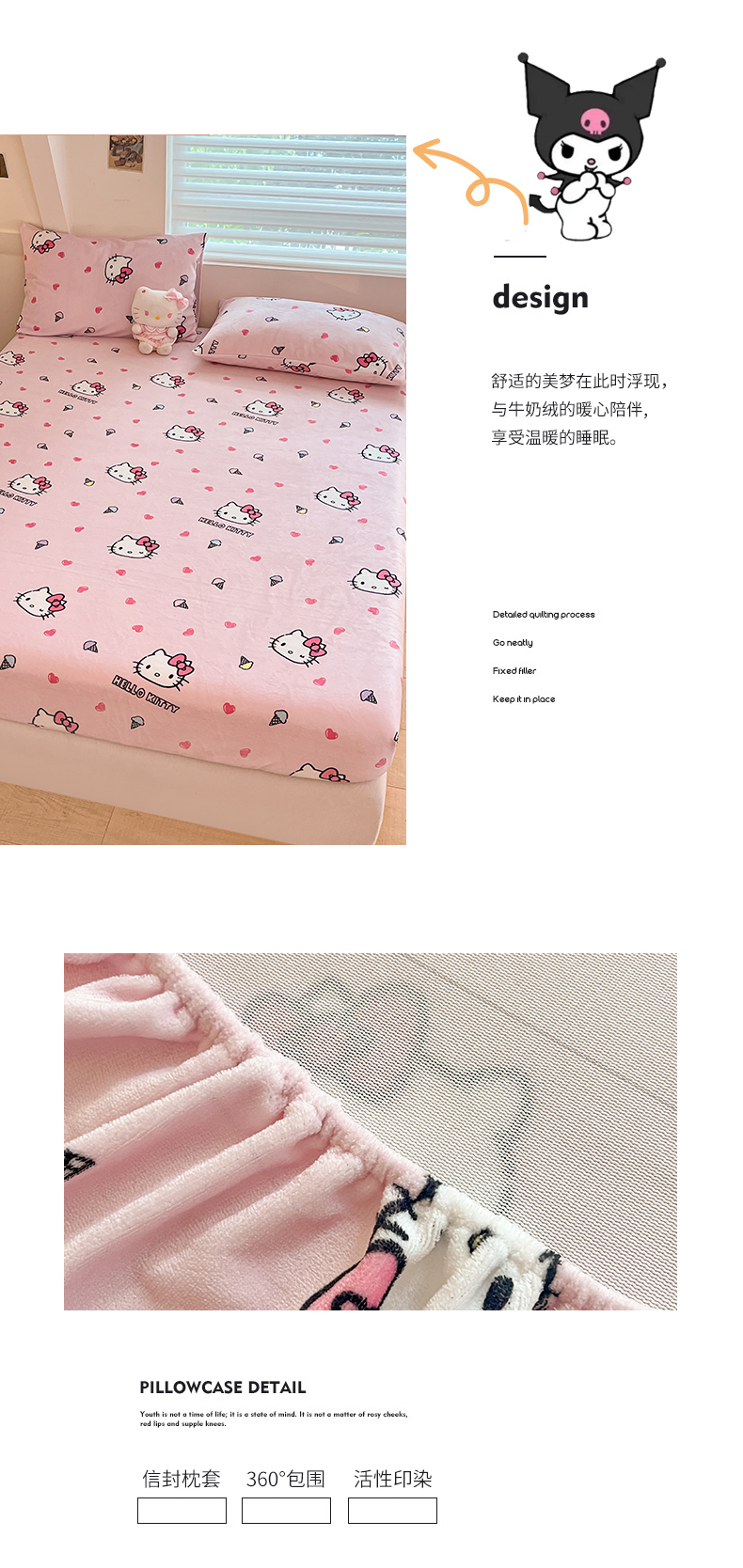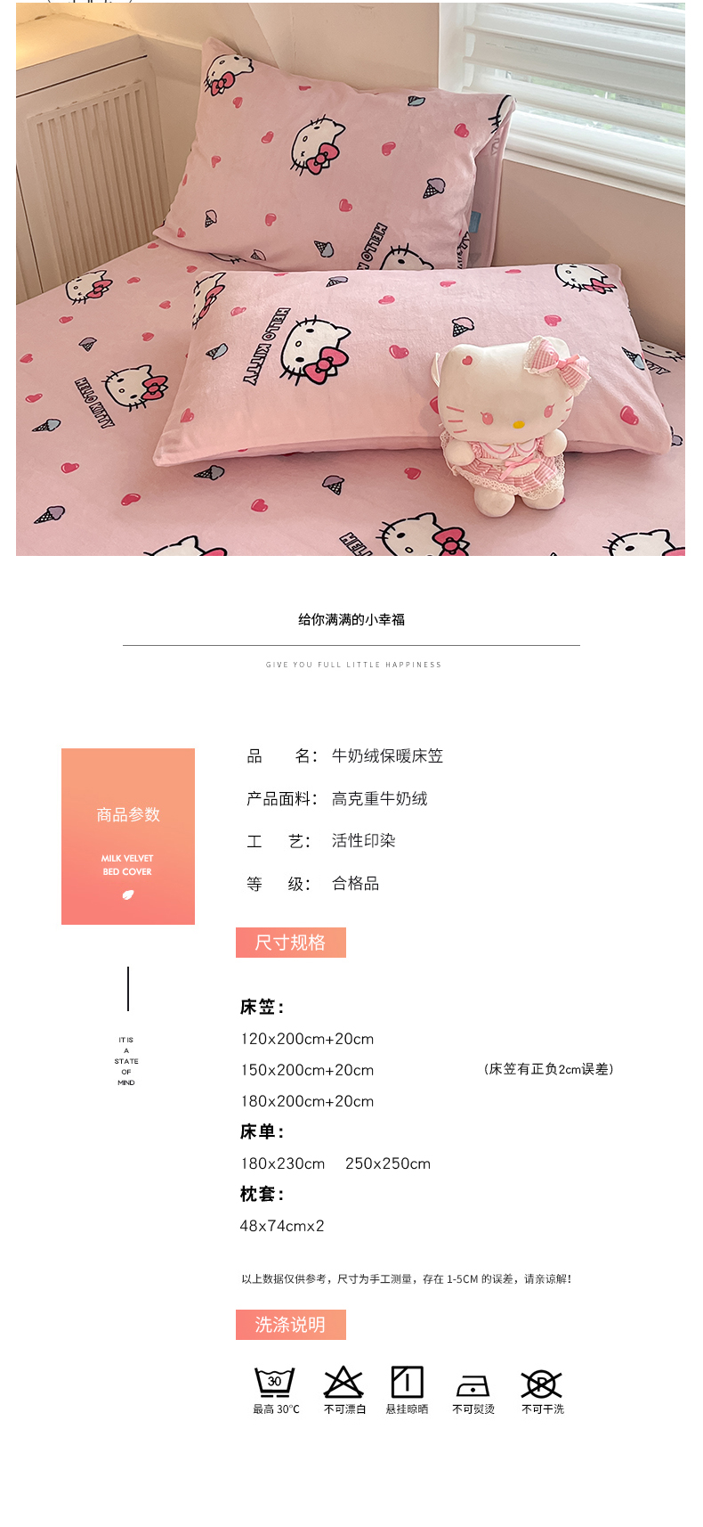 金爱家 2025新款三丽鸥牛奶绒单品系列床单床笠单件 绒-X粉心甜筒kt