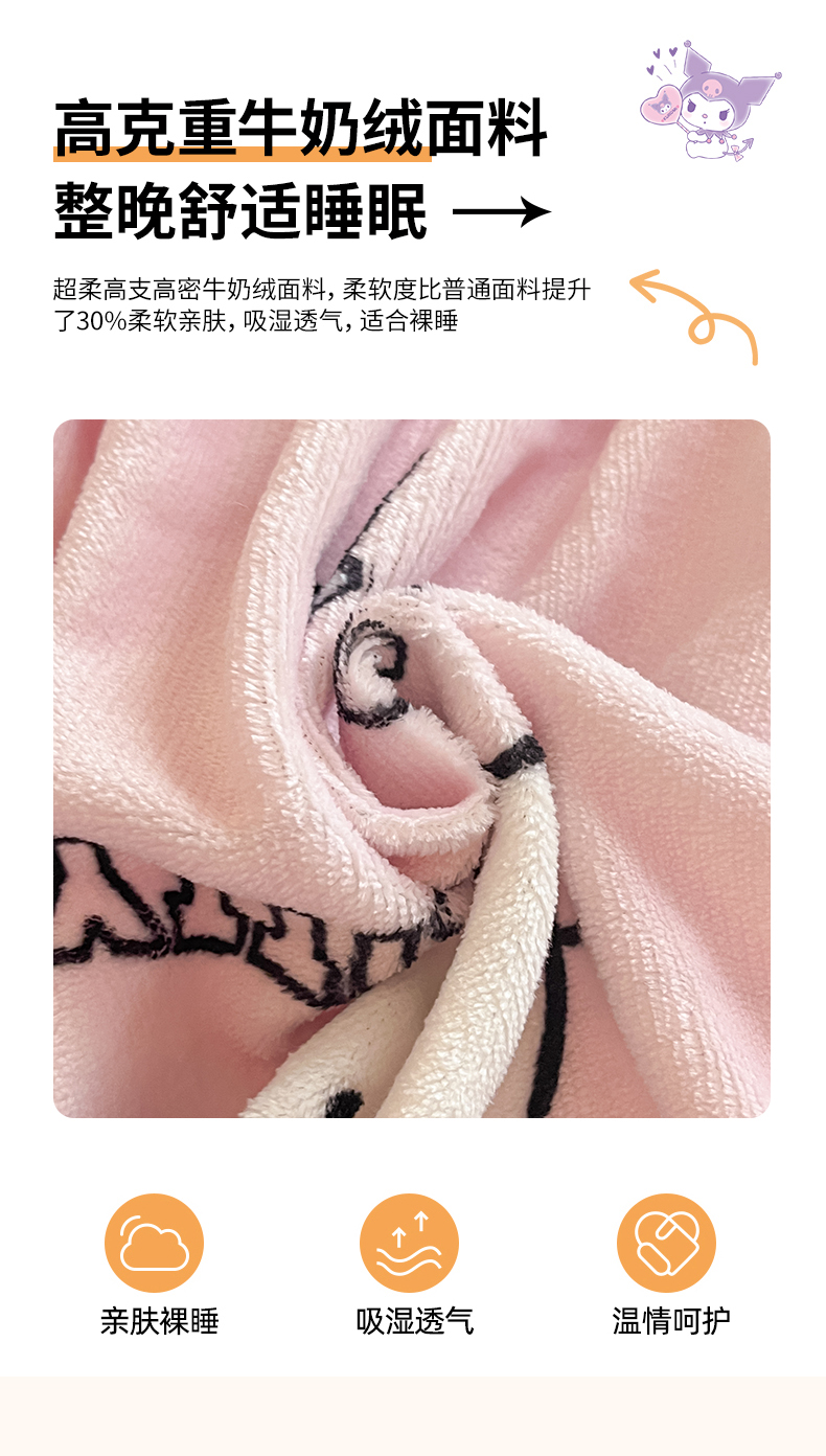• 91家纺网 家纺一手货源 找家纺 金爱家 2025新款三丽鸥牛奶绒单品系列床单床笠单件 绒-X粉心甜筒kt
