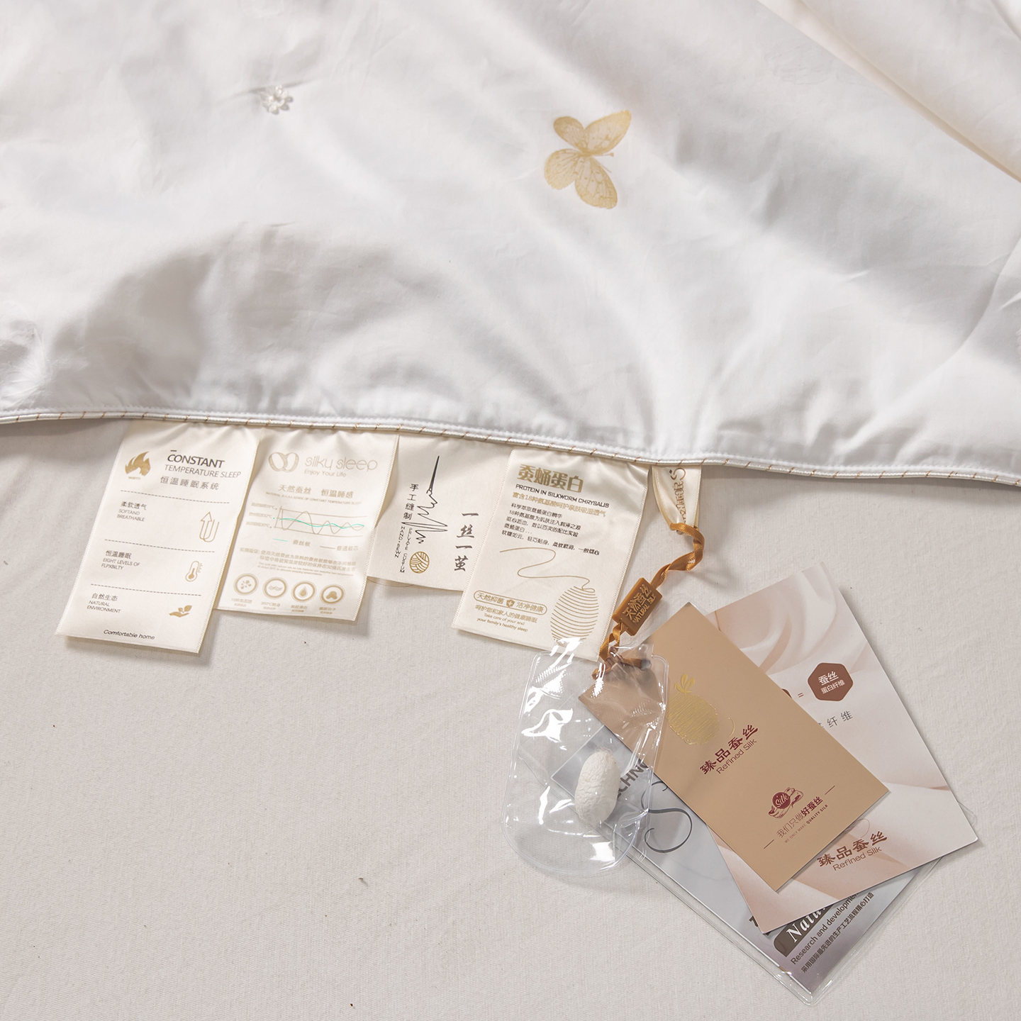 • 91家纺网 家纺一手货源 找家纺 静若居羽绒被壳 2025新款蚕丝被蚕丝棉 蝴蝶白