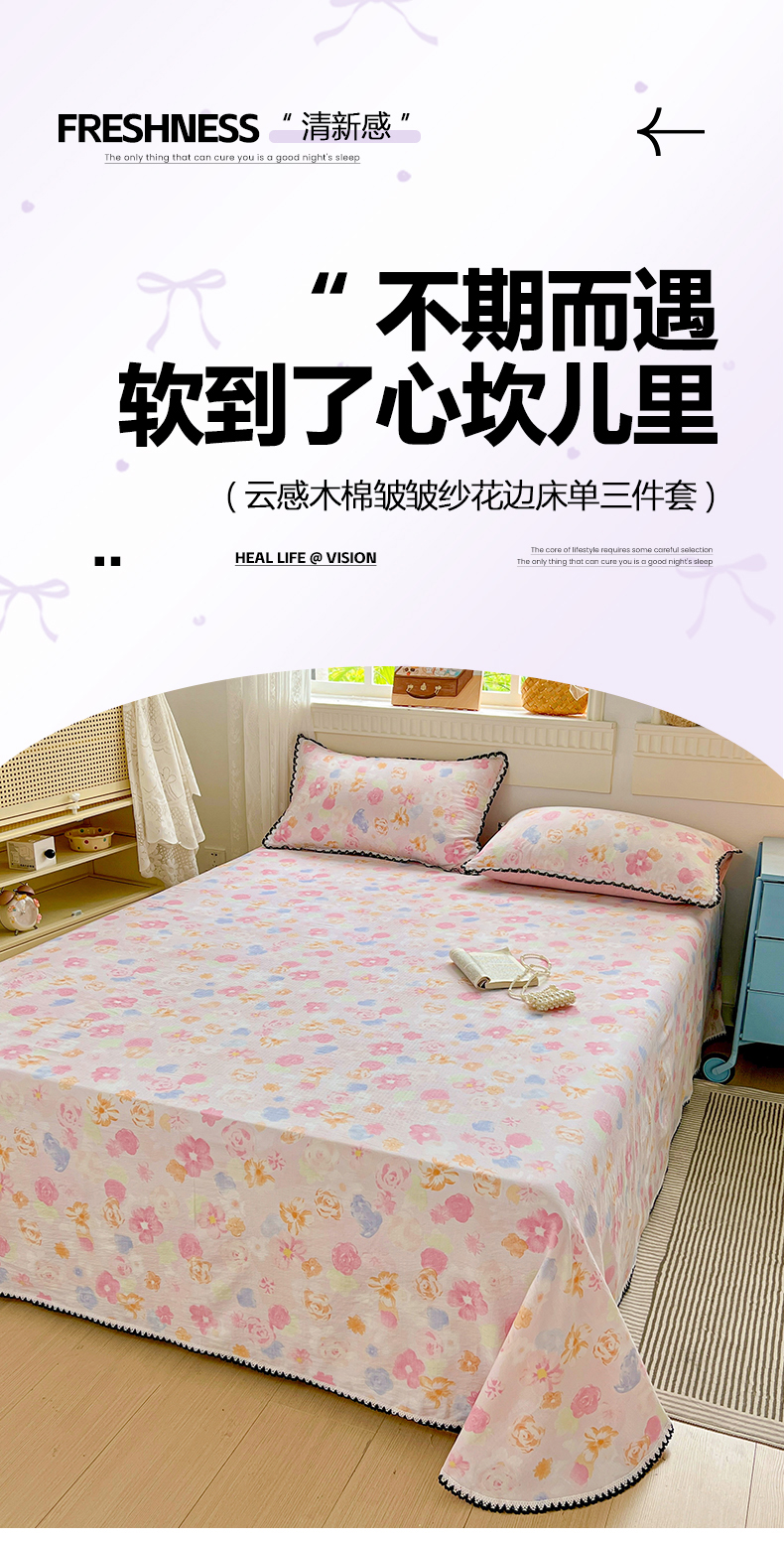 (总)鑫利来家纺 2025新款云感云感皱皱纱镂空花边床单单床单单品床单单件床单