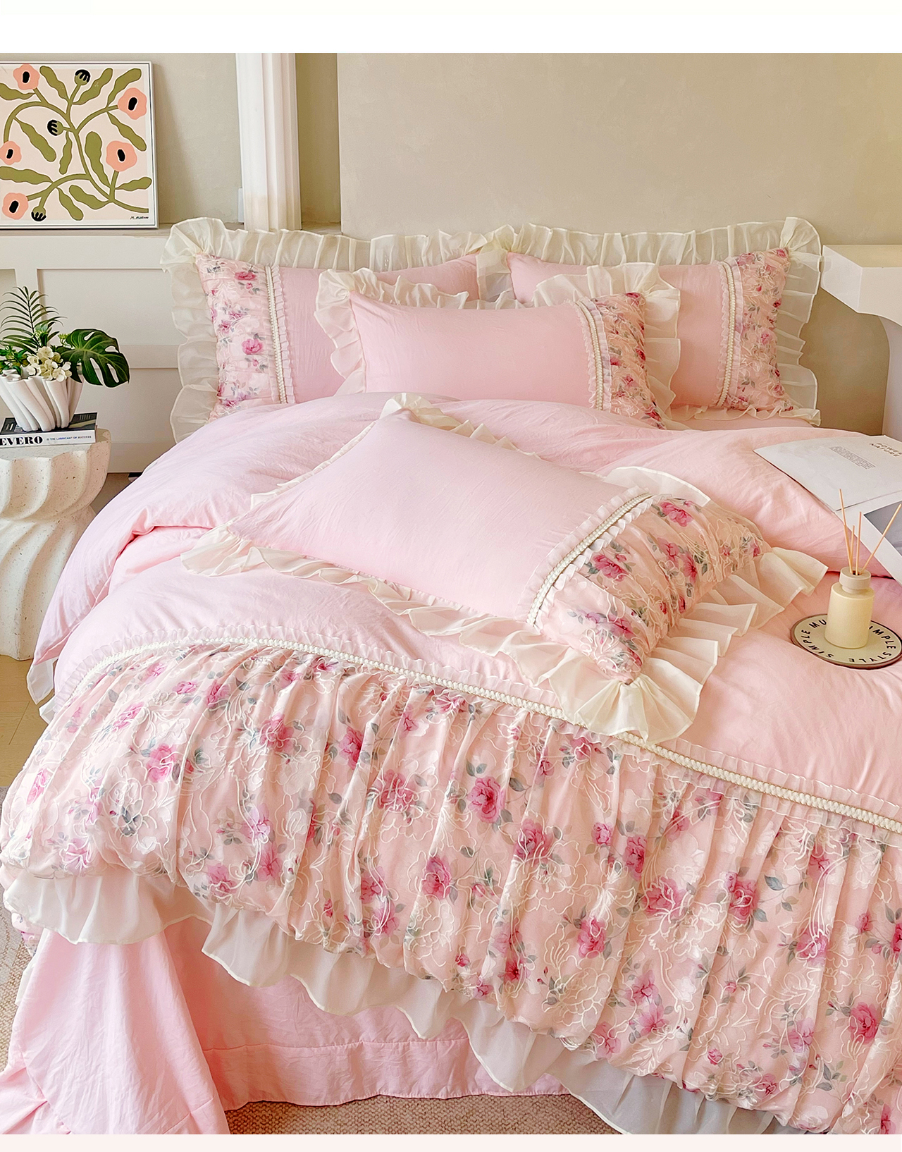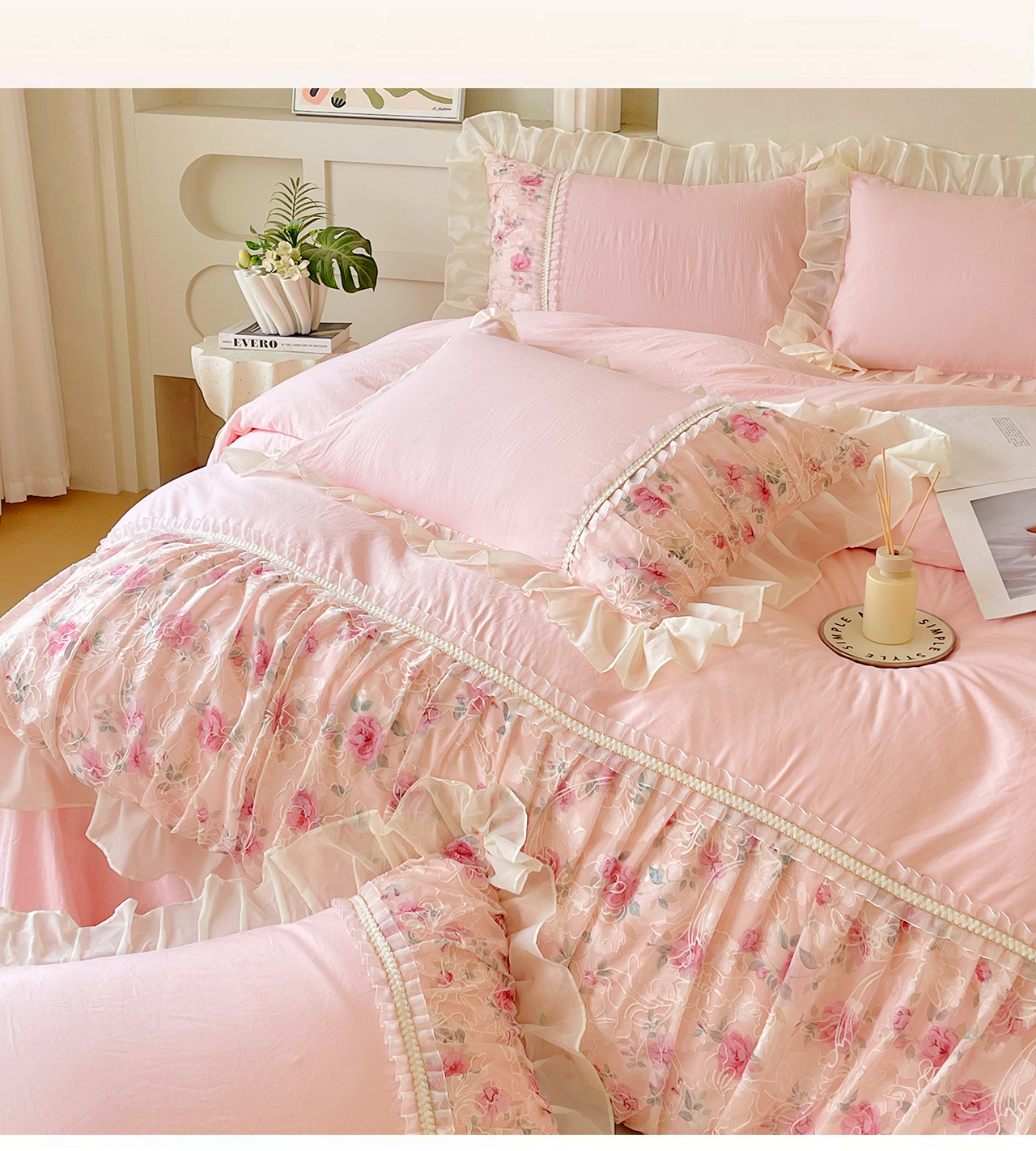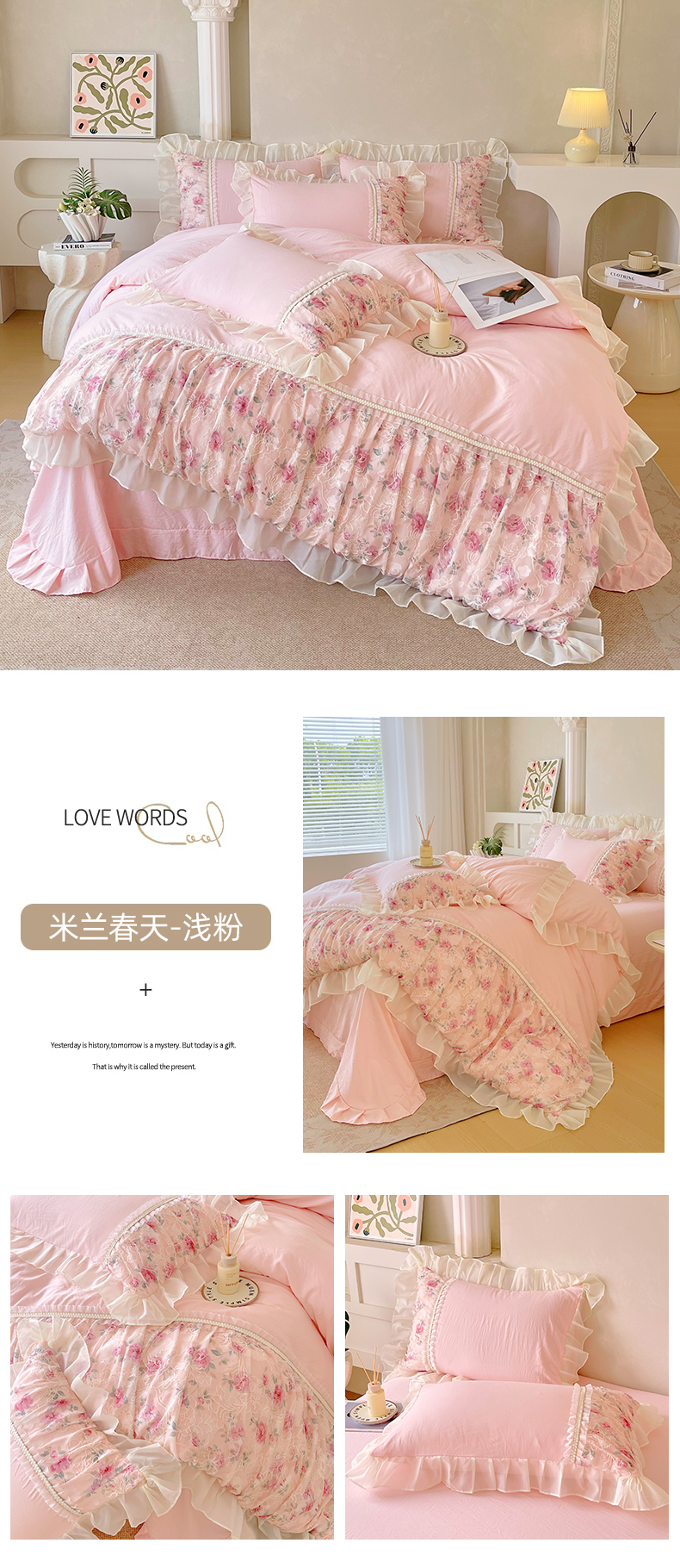 当前位置: 91家纺网 > 商品网购 > 床品套件 > 四件套 > 其它四件套 > 大麦乐田 2025新款法式少女心水洗糯小棉公主风蕾丝花边四件套 米兰春天-嫩紫
