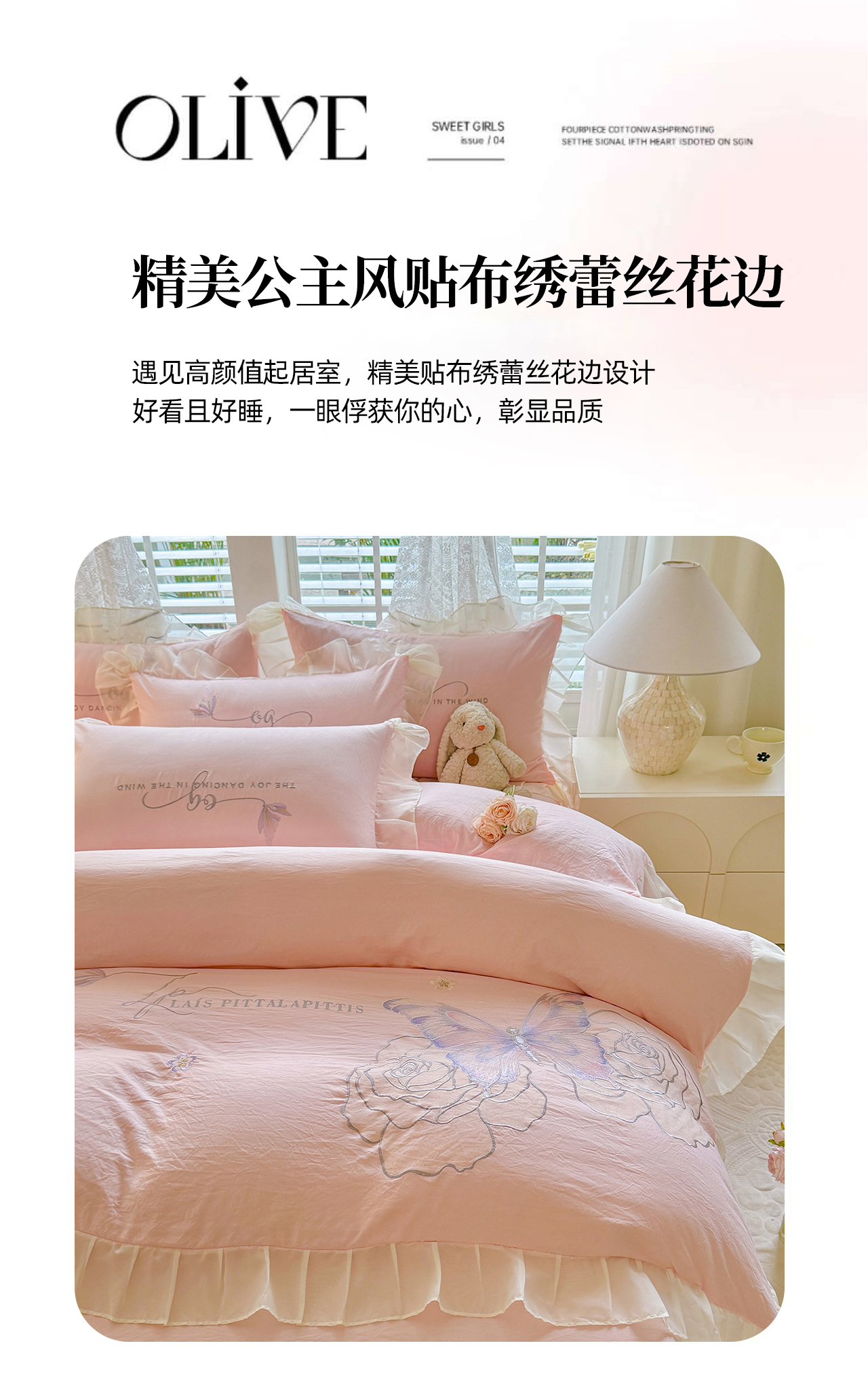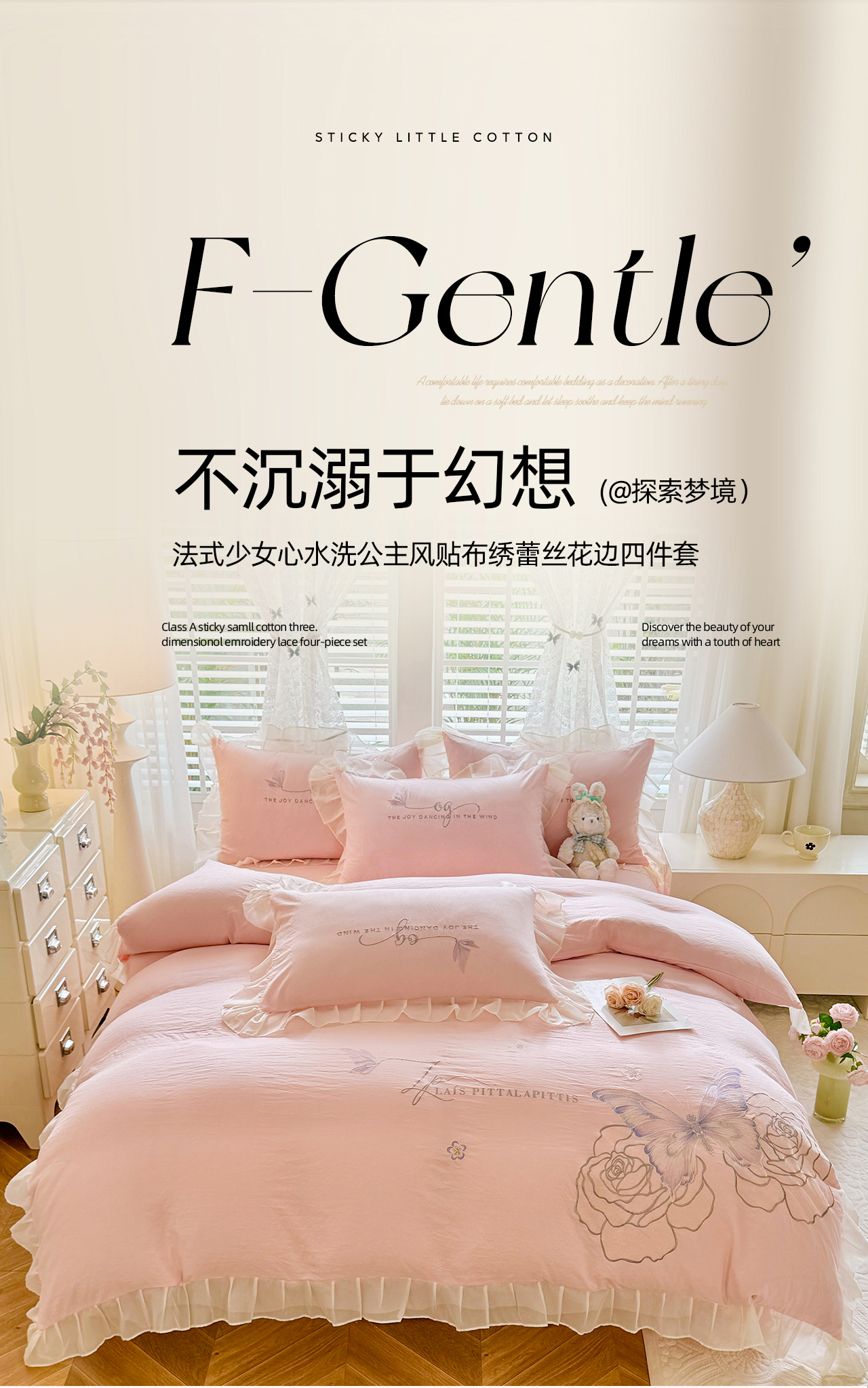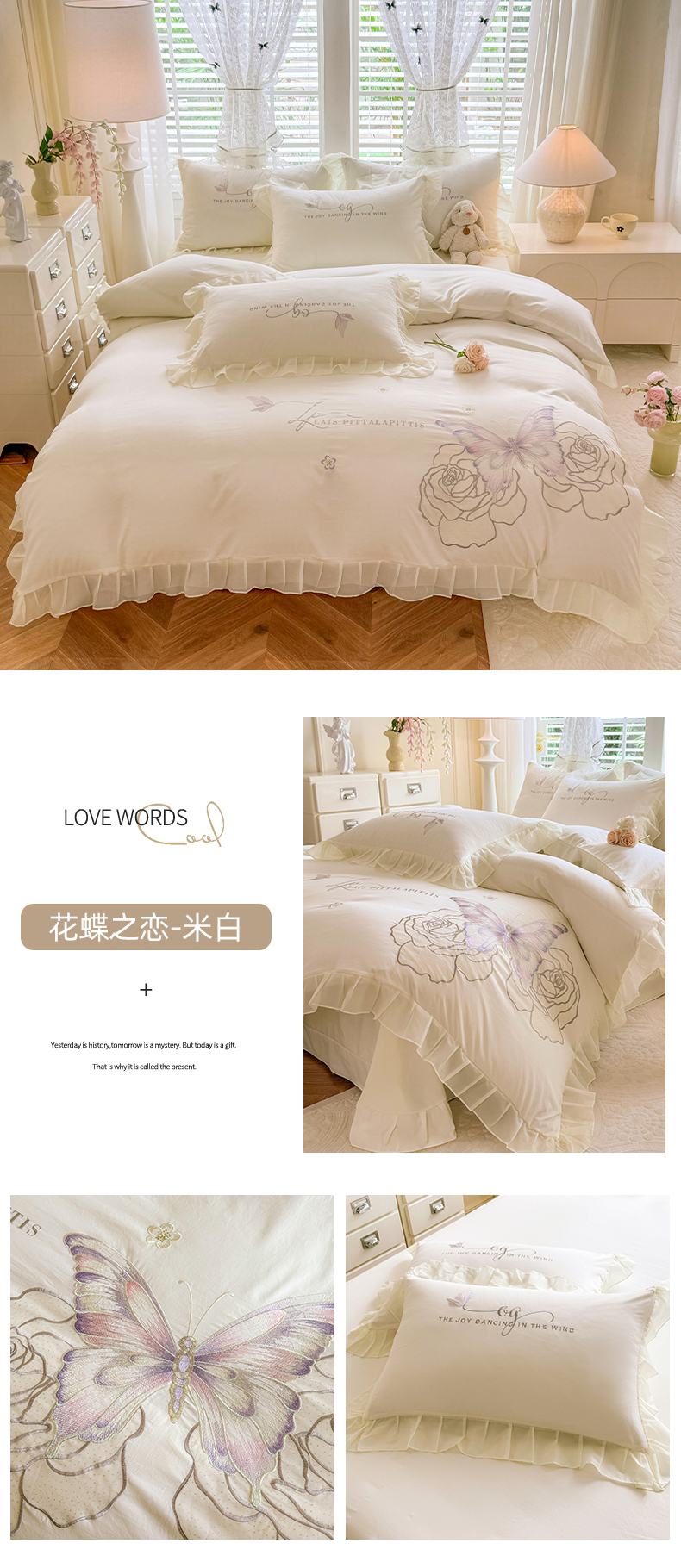 当前位置: 91家纺网 > 商品网购 > 床品套件 > 四件套 > 其它四件套 > 大麦乐田 2025新款法式少女心水洗公主风贴布绣蕾丝花边四件套 花蝶之恋-绅士灰