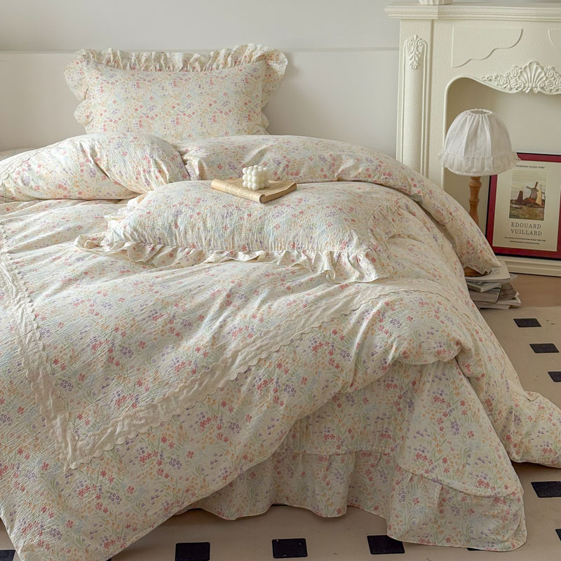 (总)欧尚 2026新款花边床盖四件套,春和,花束,花野,灰樱桃,咖爱心,咖豹纹,咖啡小猫,梨花落,绿爱心,梦境,木马,奶油波点,暖橘枝,暖心,人间草木,田园兔,小女孩,星愿,摇摇马,紫爱心,紫豹纹,紫苏