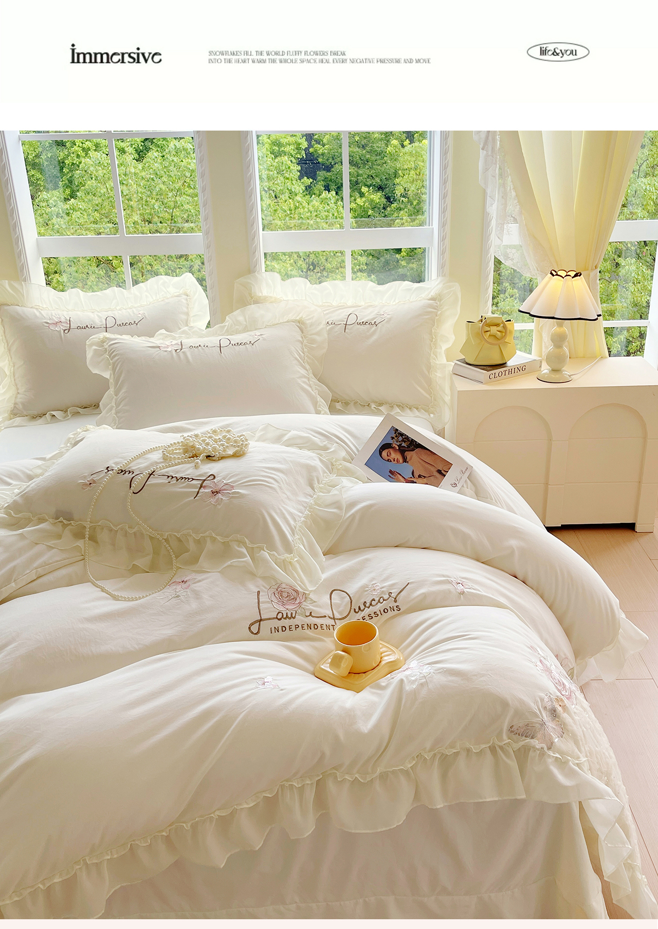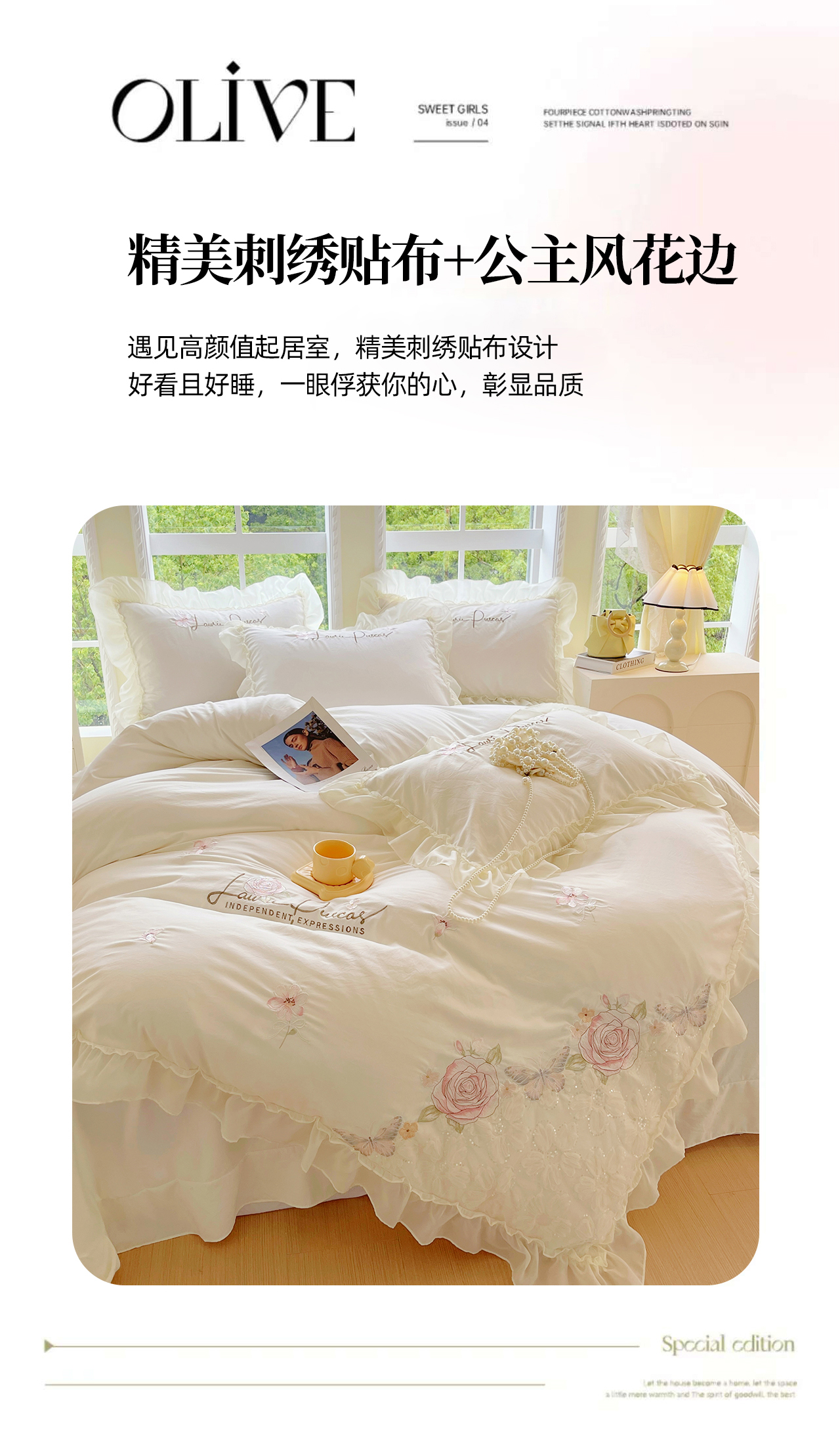 (总)大麦乐田 2025新款公主风花边糯小棉刺绣贴布绣四件套