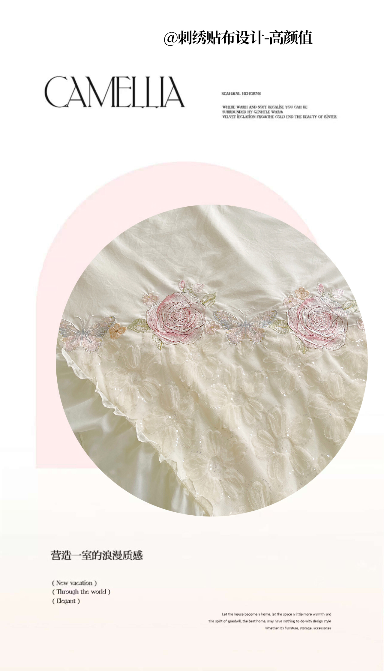 商品名称:(总)大麦乐田 2025新款公主风花边糯小棉刺绣贴布绣四件套