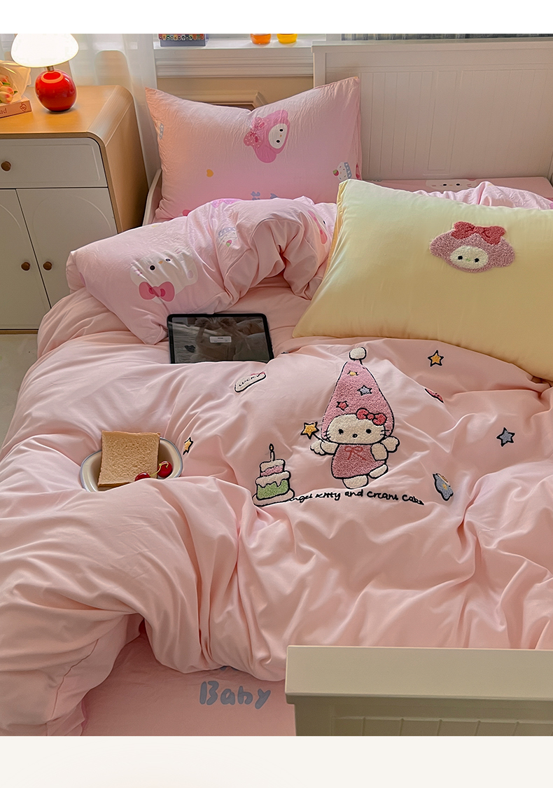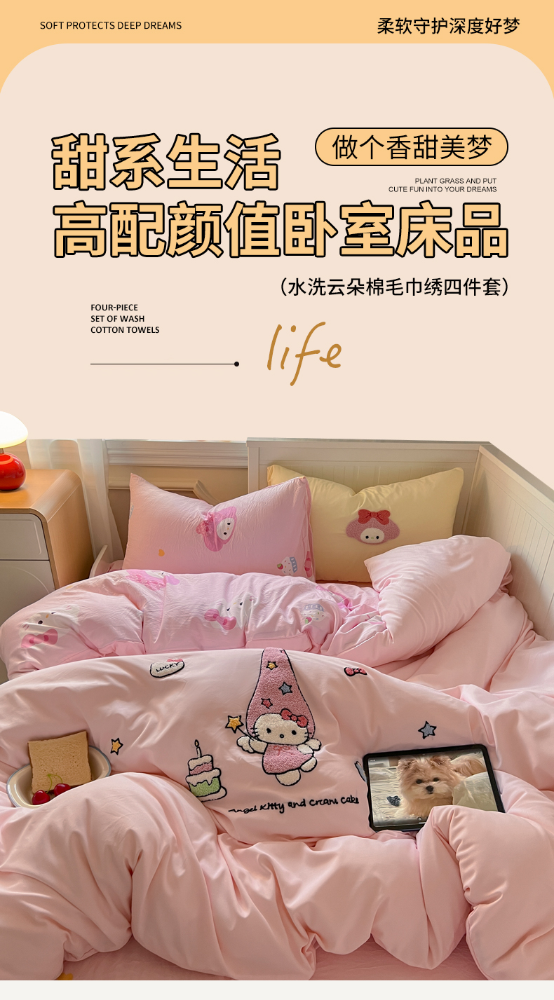 当前位置: 91家纺网 > 商品网购 > 床品套件 > 四件套 > 毛巾绣四件套 > 三元色 2025新款110克水洗云朵棉毛巾绣四件套 蛋糕kt粉