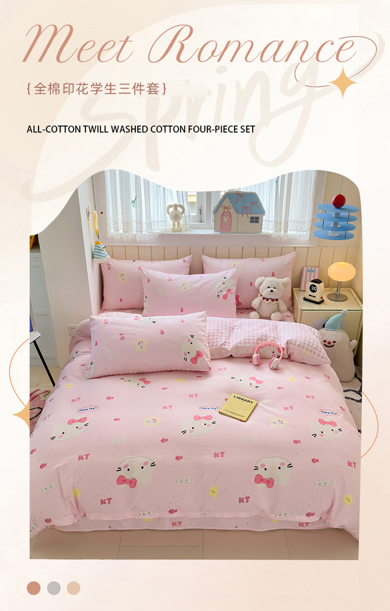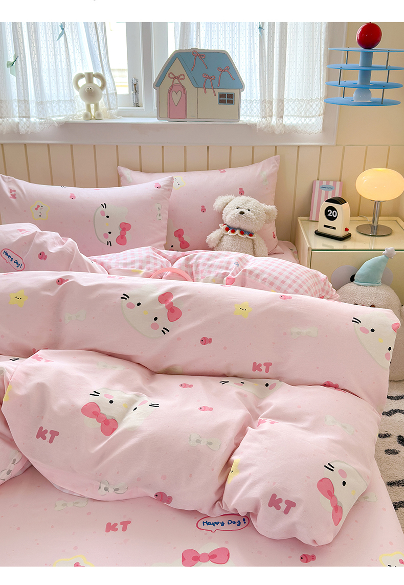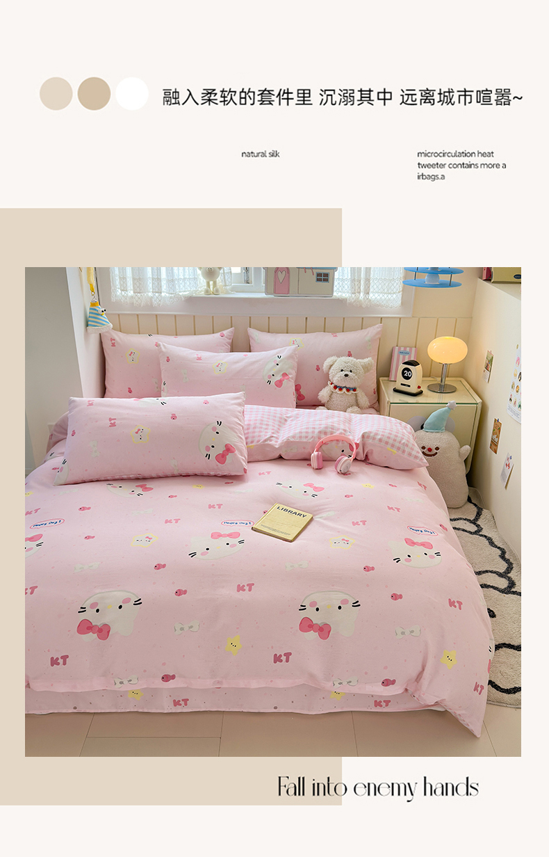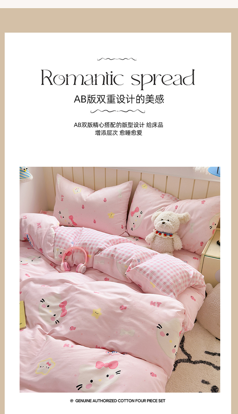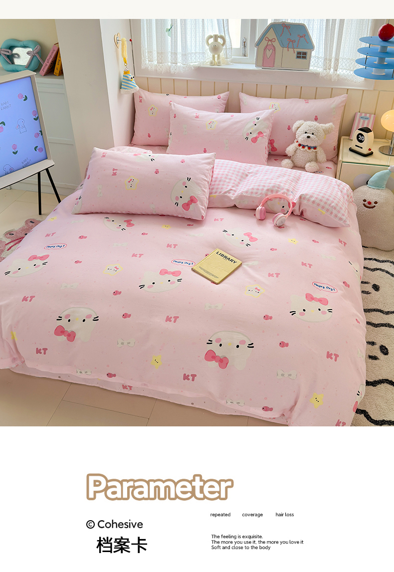 当前位置: 91家纺网 > 商品网购 > 床品套件 > 四件套 > 全棉普通四件套 > 曼之夏 2025新款全棉纯棉40支学生季卡通印花四件套 甜心猫咪