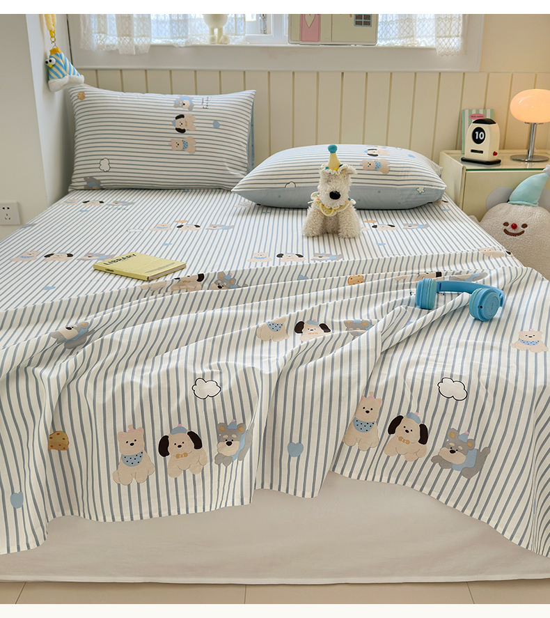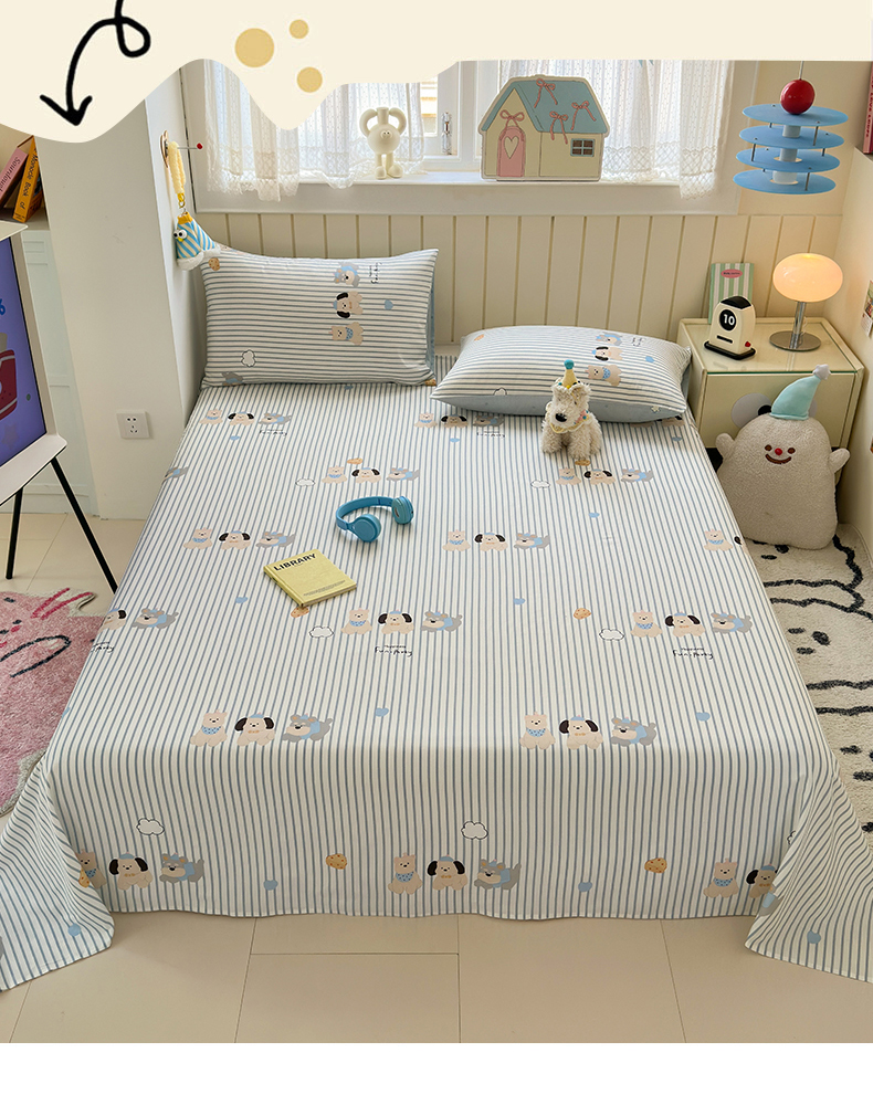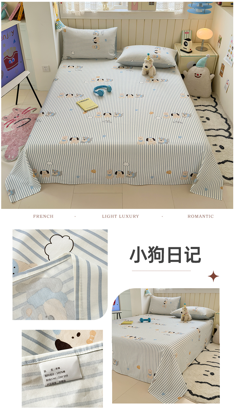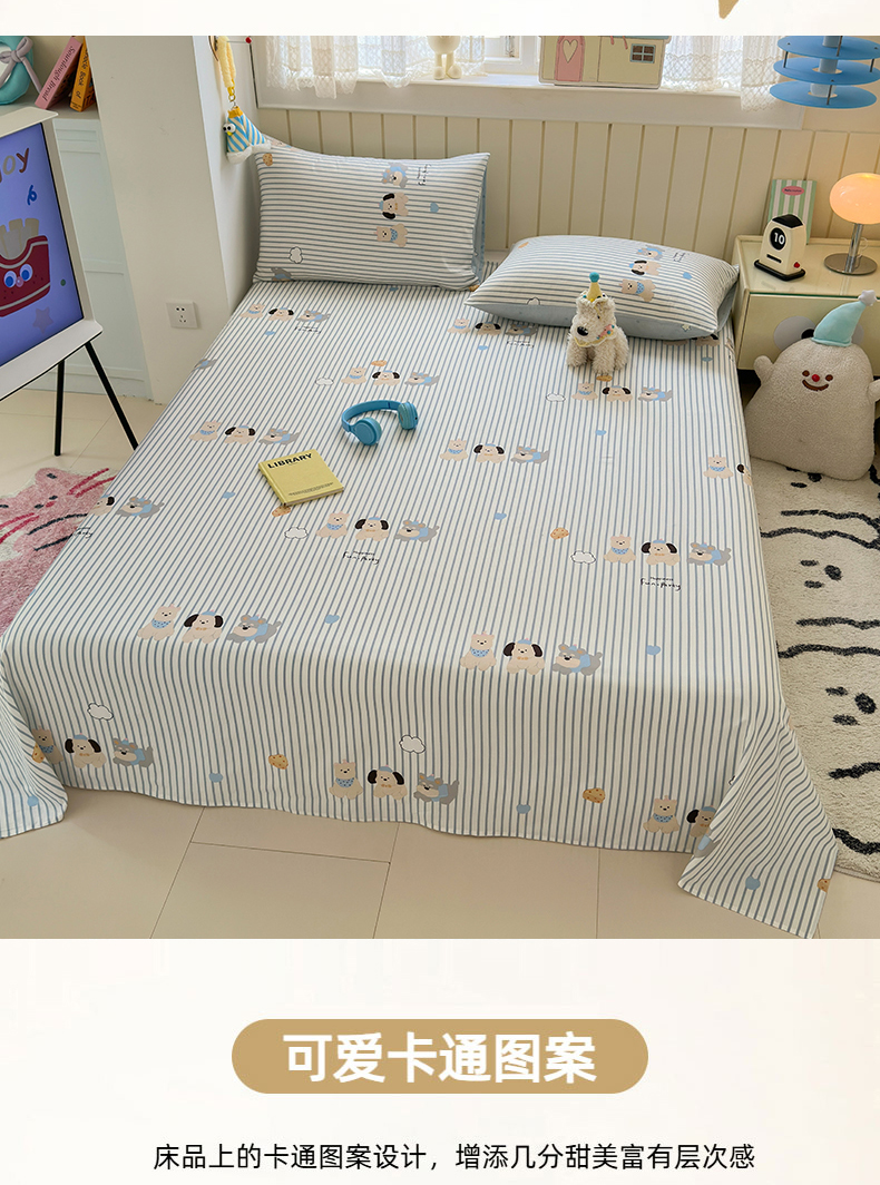 • 91家纺网 家纺一手货源 找家纺 曼之夏 2025新款全棉纯棉40支学生季卡通印花床单单床单床单单件 小狗日记