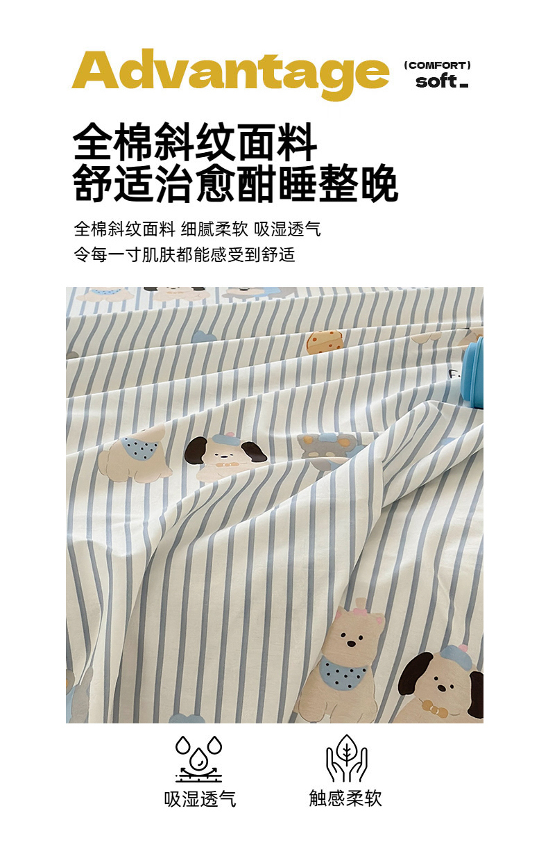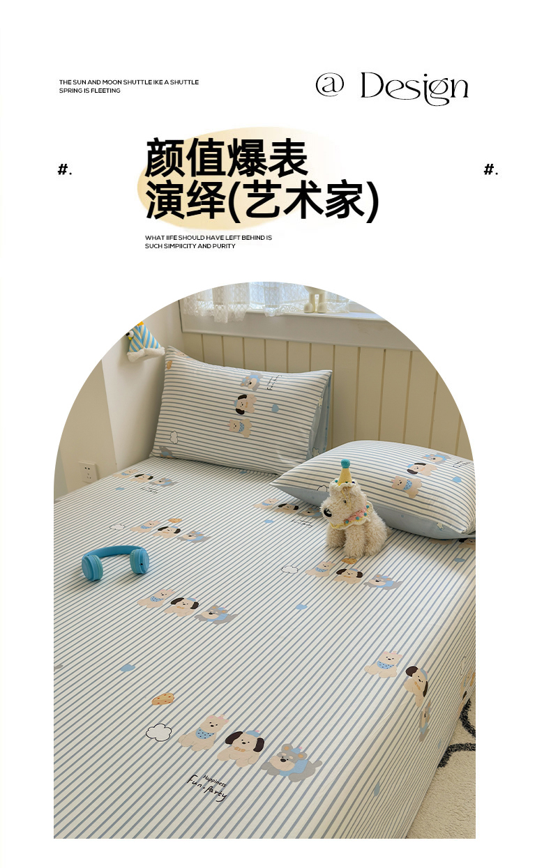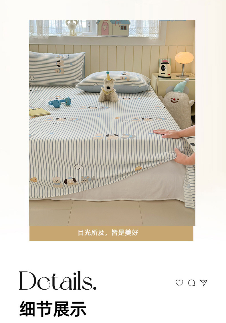 • 91家纺网 家纺一手货源 找家纺 曼之夏 2025新款全棉纯棉40支学生季卡通印花床单单床单床单单件 小狗日记