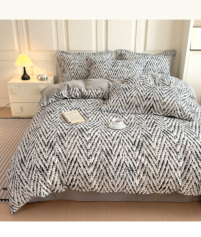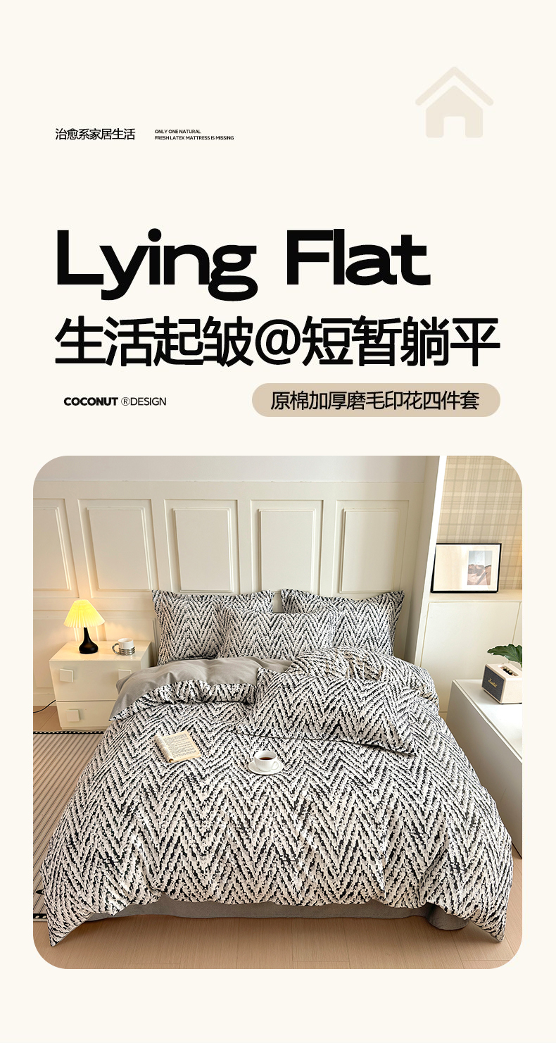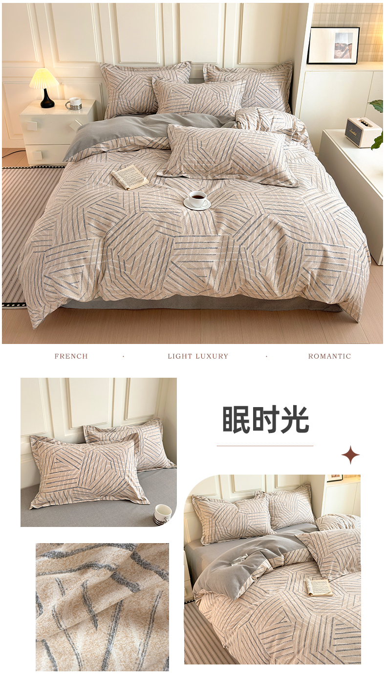 当前位置: 91家纺网 > 商品网购 > 床品套件 > 四件套 > 普通磨毛四件套 > 曼之夏 2025新款原棉加厚磨毛印花四件套 麦语-灰