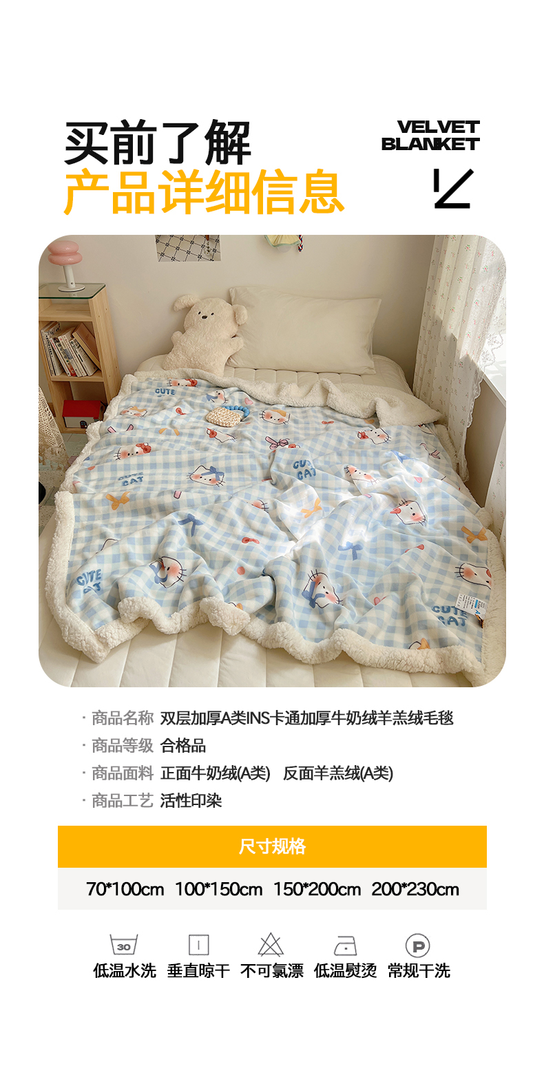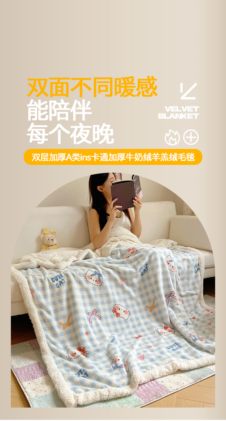 当前位置: 91家纺网 > 商品网购 > 毛毯休闲毯绒毯 > 毛毯 > 桃子家居 2025新款A类ins小清新少女可爱奶油猫咪卡通加厚牛奶绒羊羔绒毛毯多功能毛毯 绒毛毯-MT蓝格喵喵