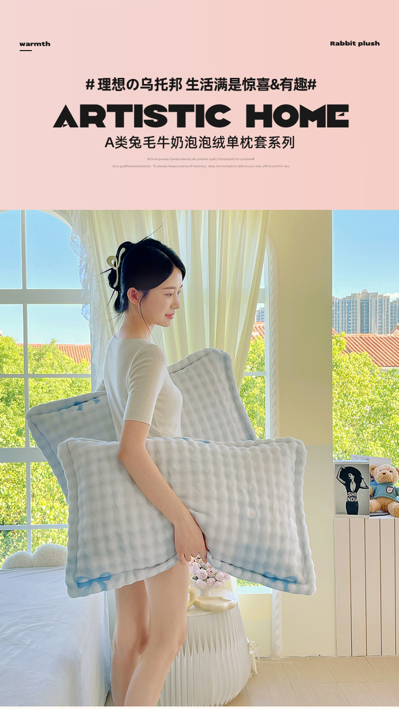 商品名称:凯儿家纺 2025新款兔毛牛奶泡泡绒单枕套单品枕套枕套单件 蓝色旋律