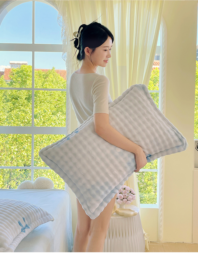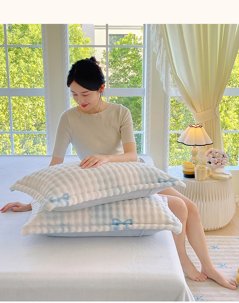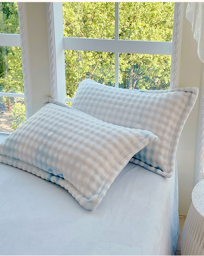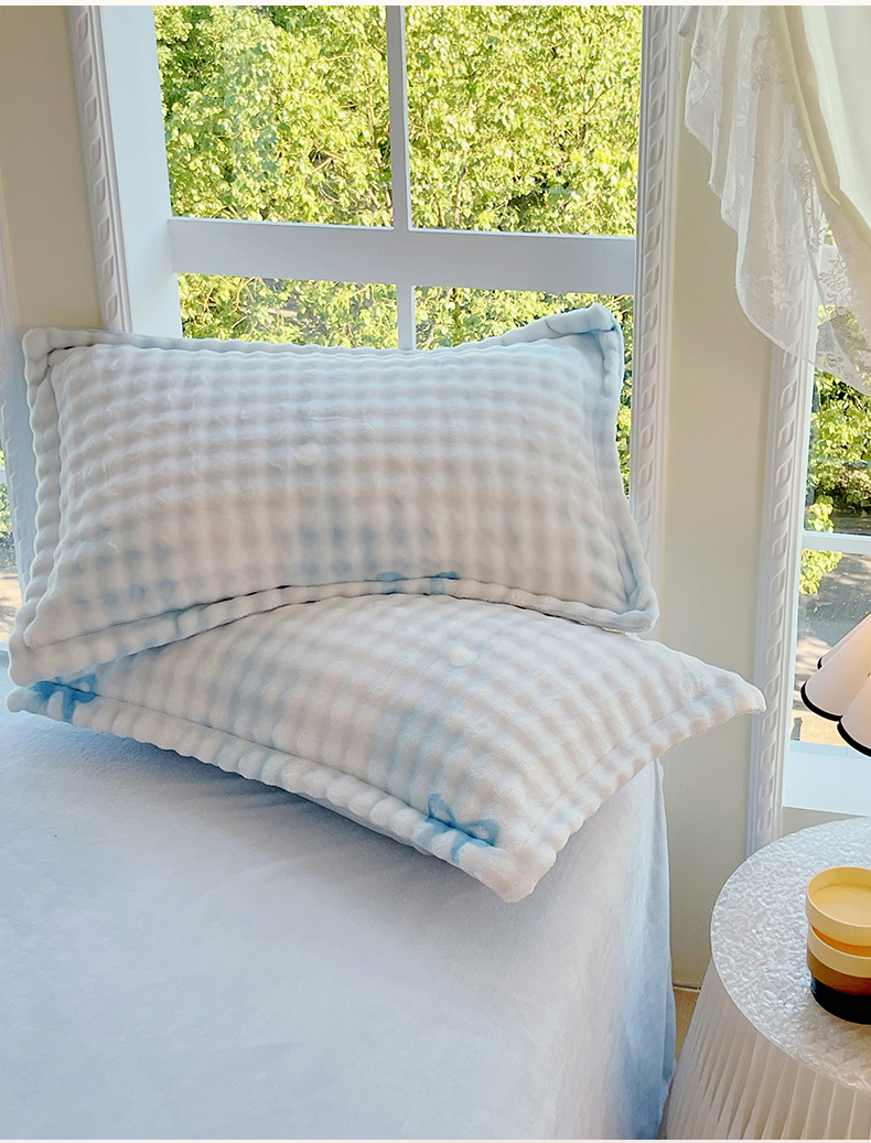 凯儿家纺 2025新款兔毛牛奶泡泡绒单枕套单品枕套枕套单件 蓝色旋律