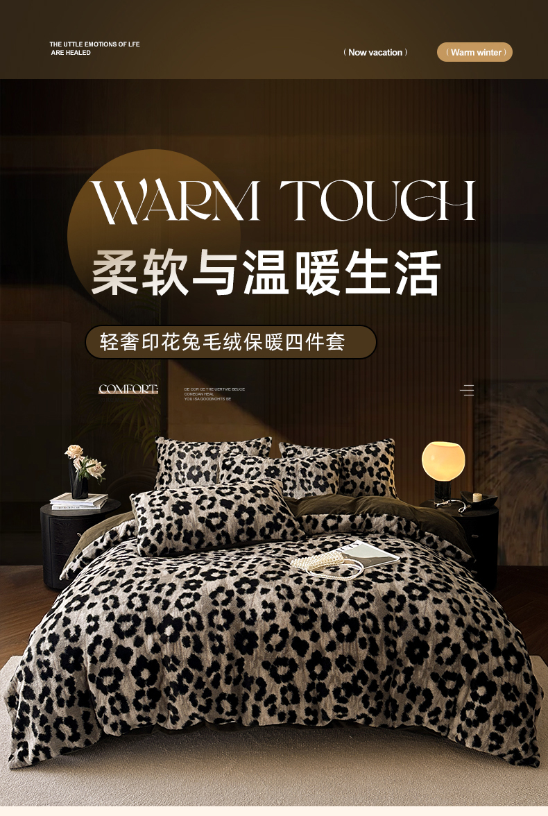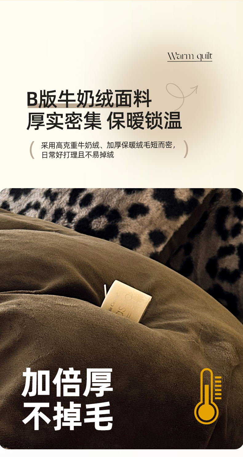 当前位置: 91家纺网 > 商品网购 > 床品套件 > 四件套 > 牛奶绒四件套 > 金阳光家纺 2025新款A类高克重兔毛绒保暖印花牛奶绒四件套 美拉德系列 美拉德-豹纹咖