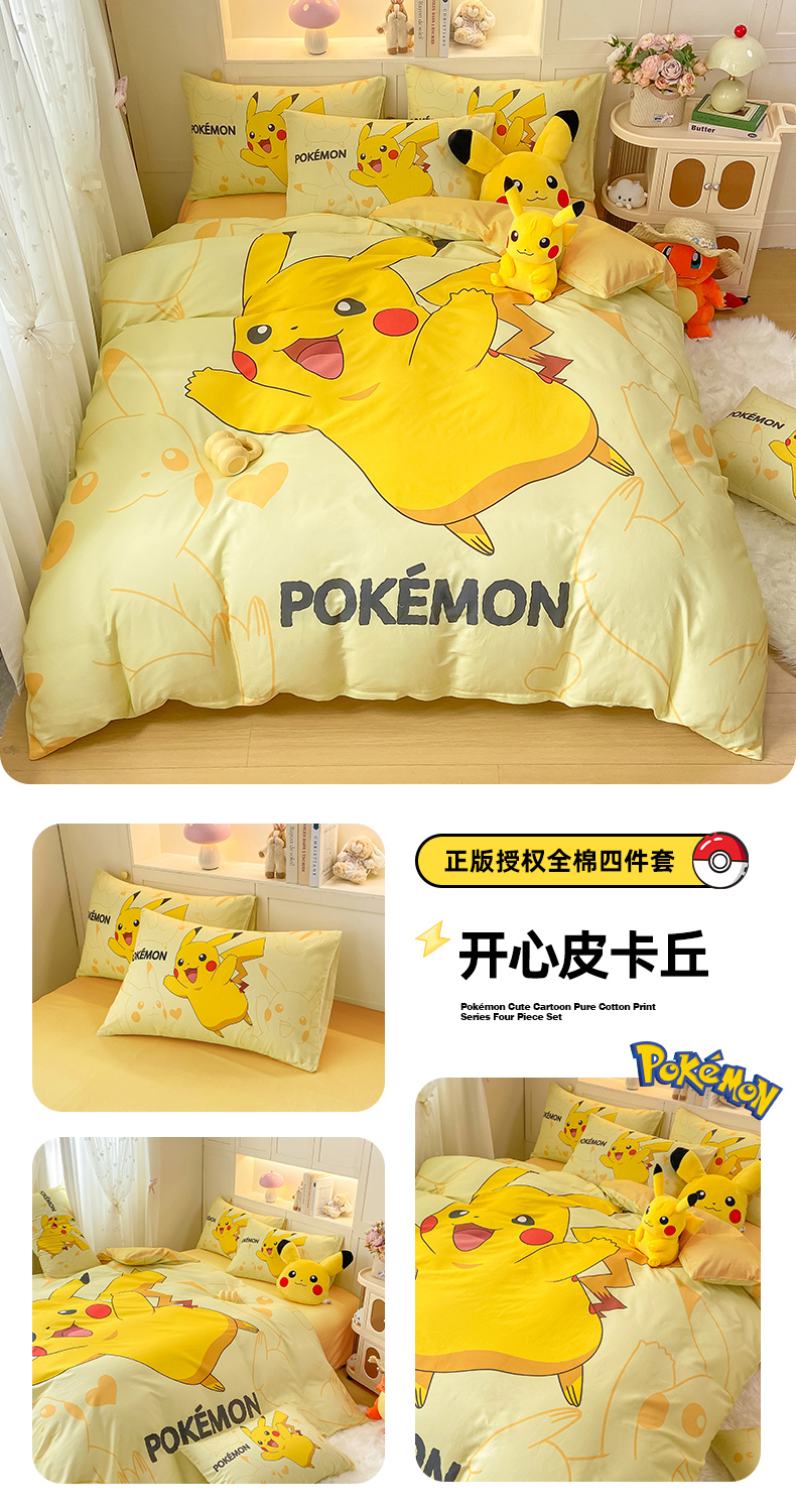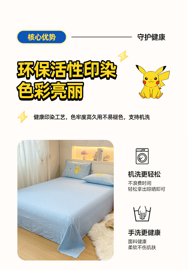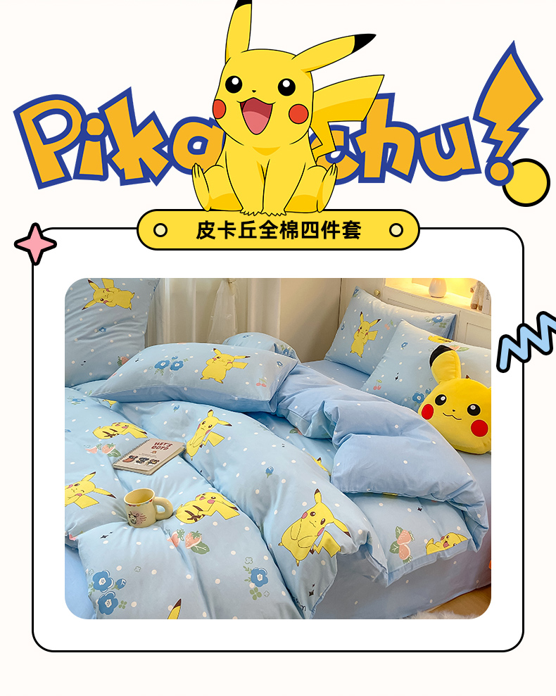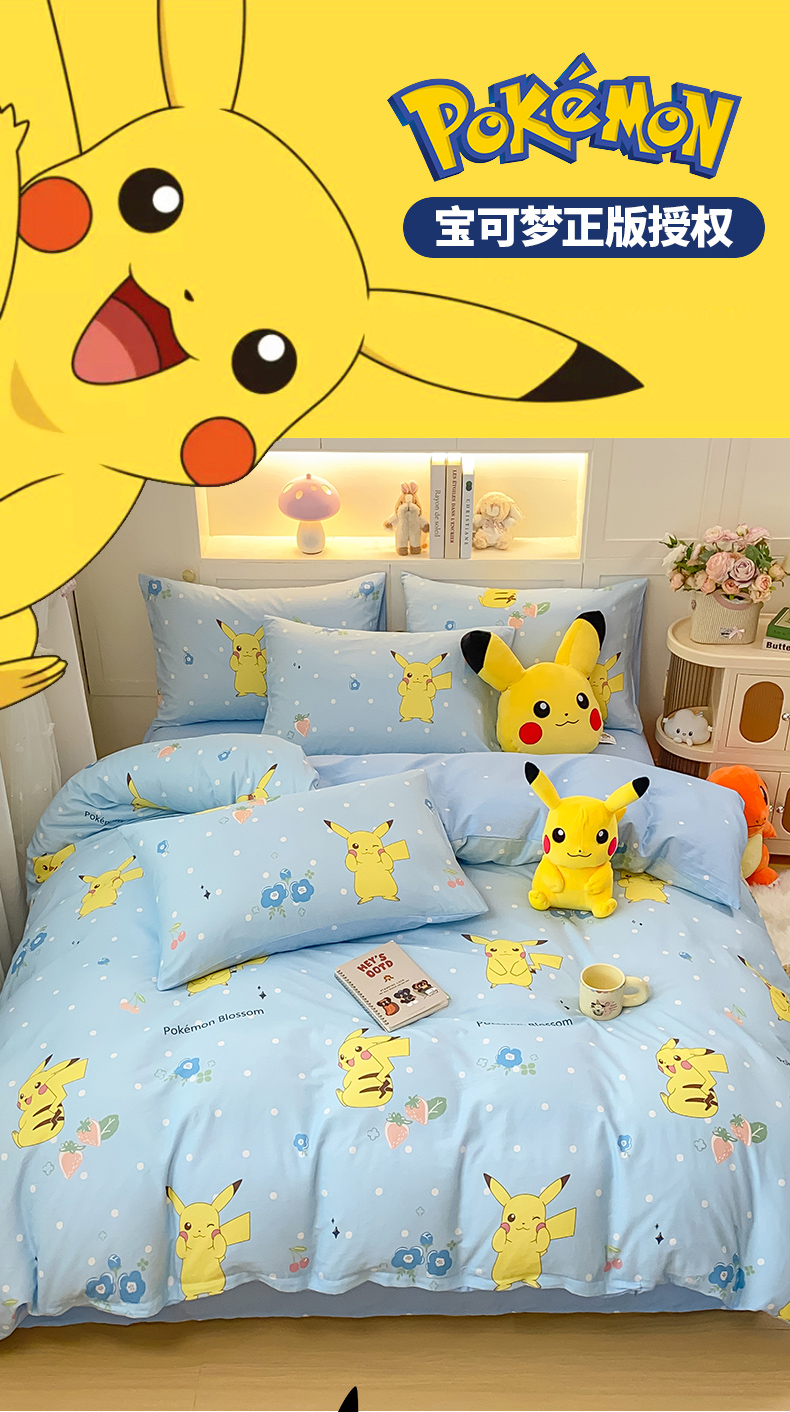 当前位置: 91家纺网 > 商品网购 > 床品套件 > 四件套 > 全棉普通四件套 > 博雅 2025新款宝可梦皮卡丘成人床正版授权全棉四件套 蓝色点点皮卡丘