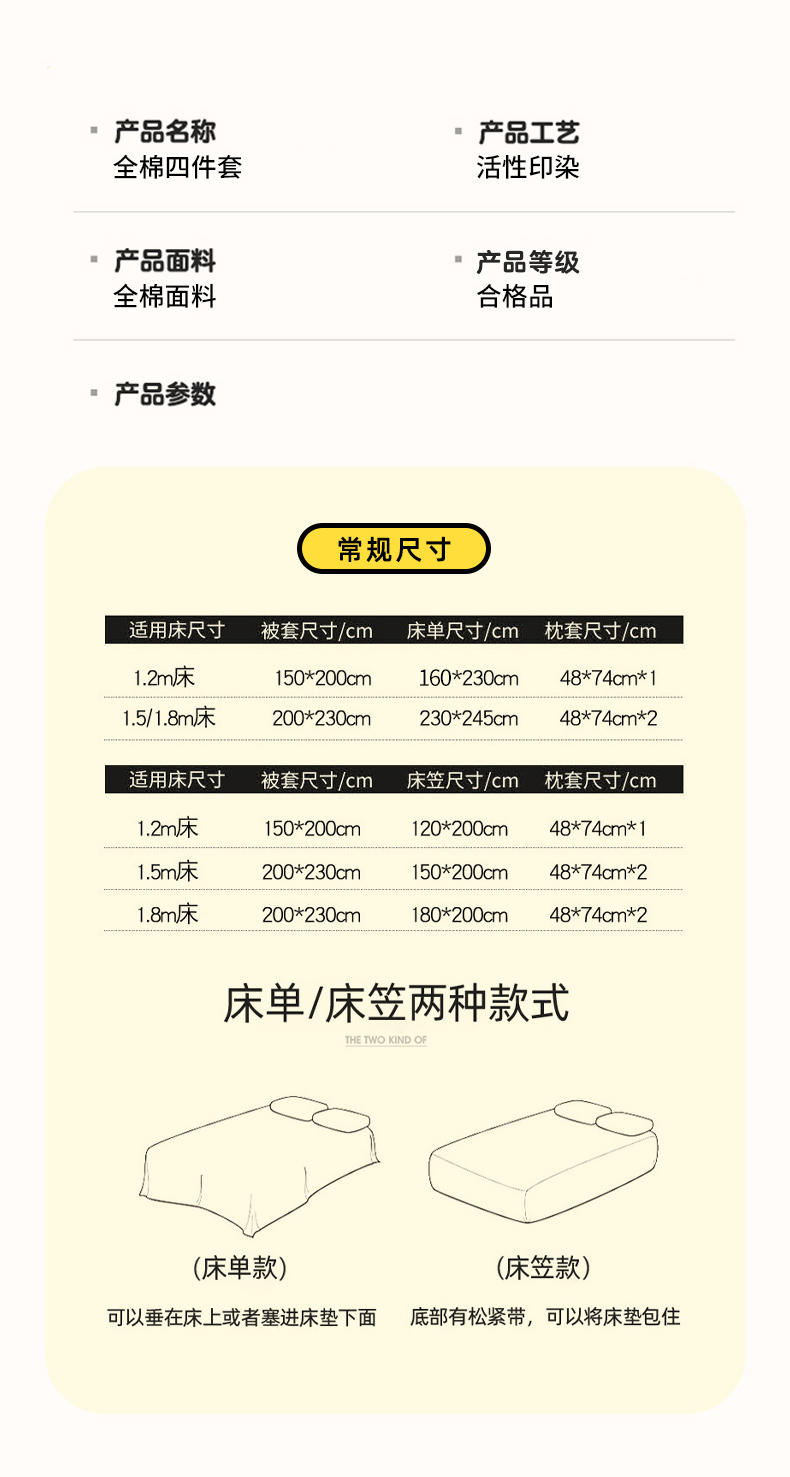 【床单款】1.8四件套-被套200x230 | ¥120.00 |