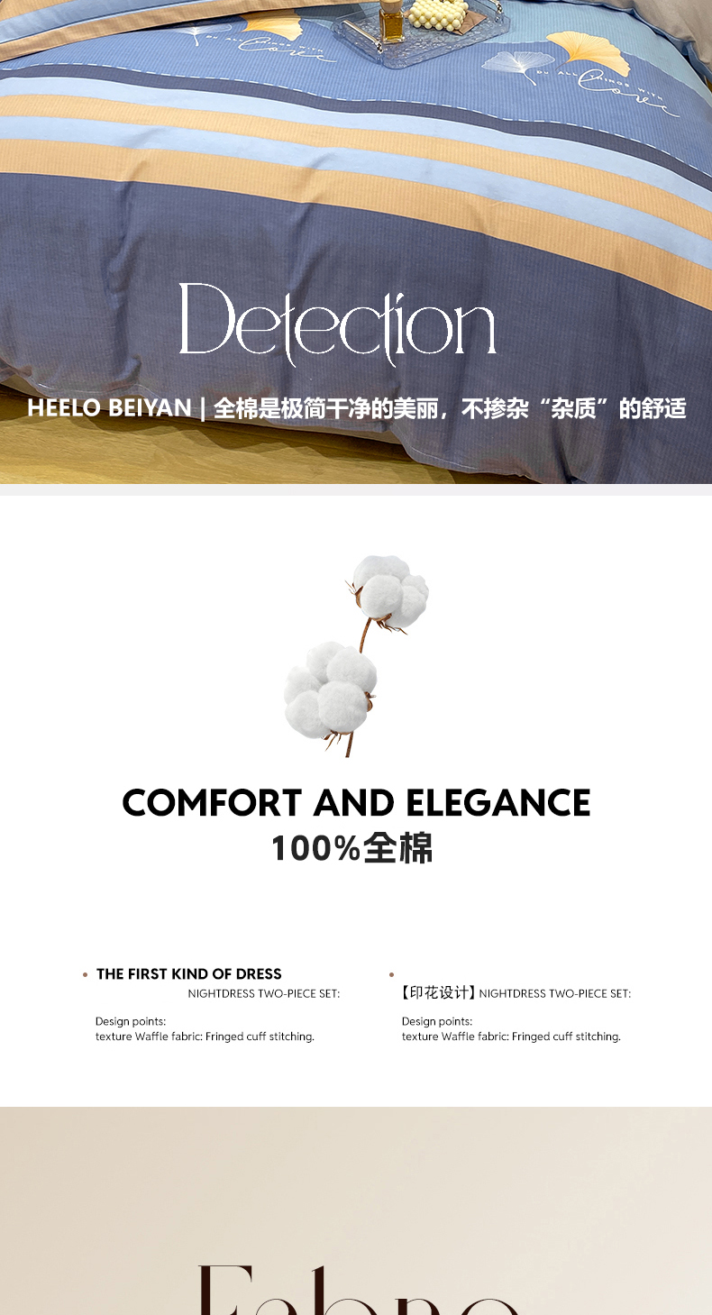 商品名称:红日子纺织品 2025新款100%全棉纯棉磨毛四件套 艾丽线条