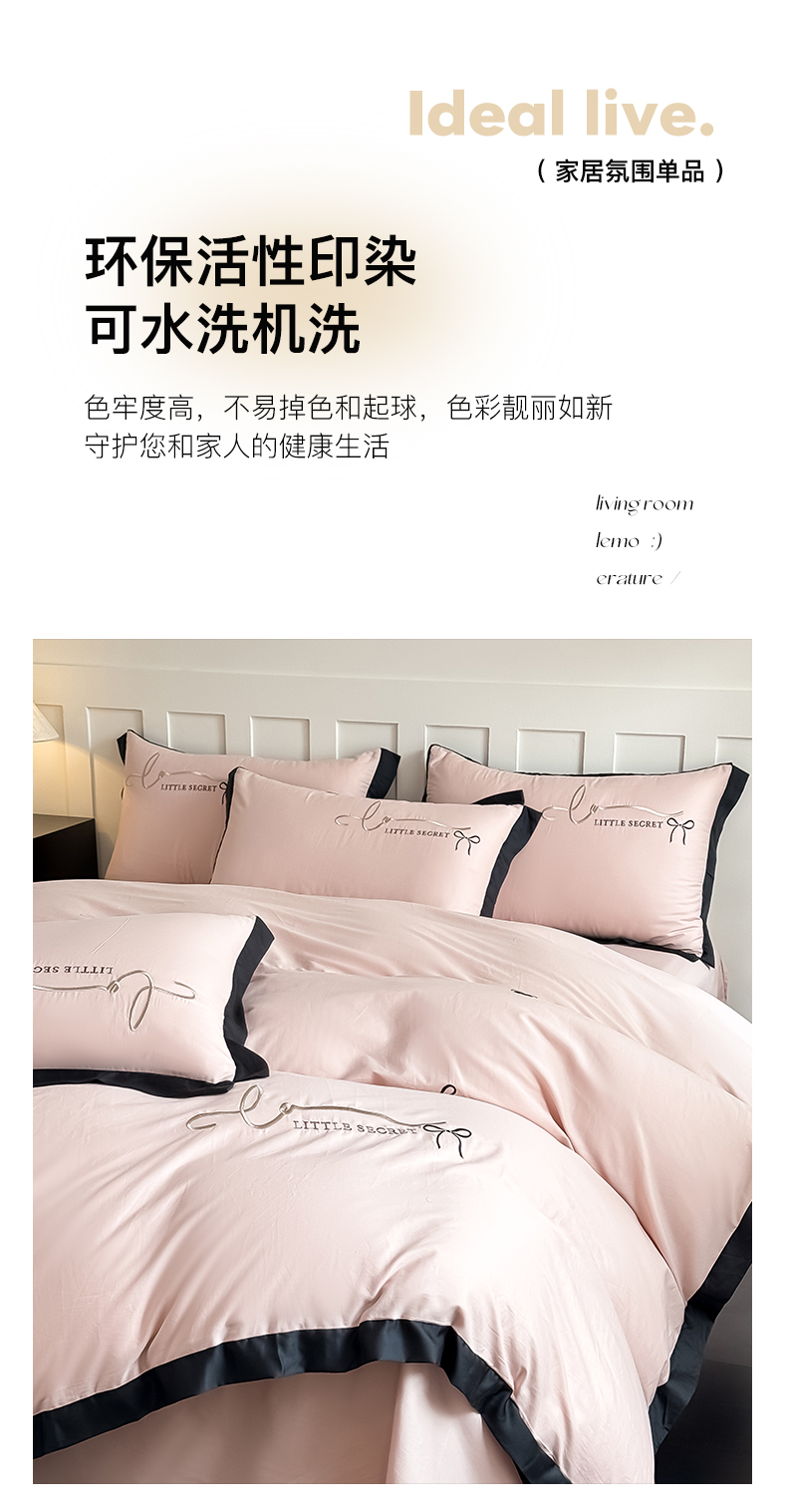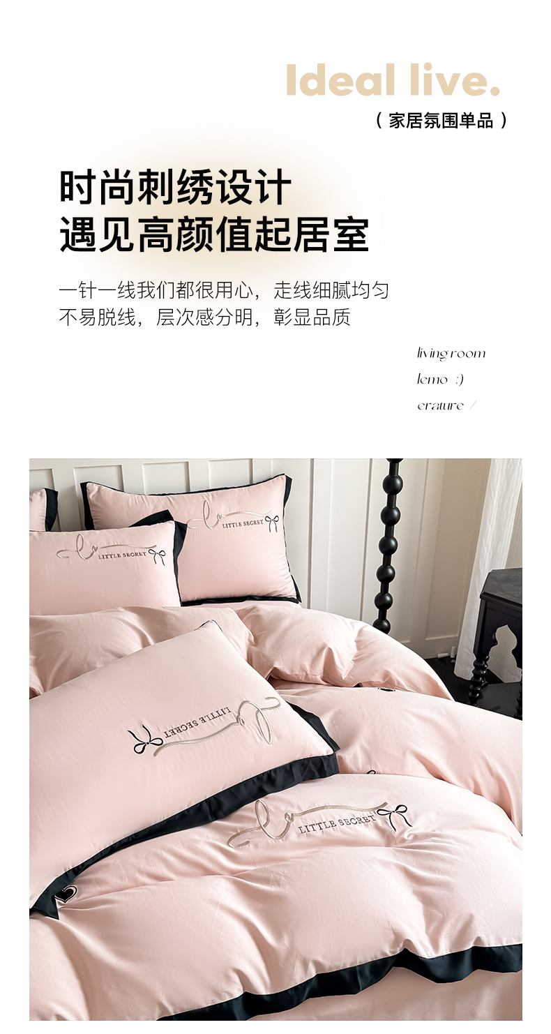 商品名称:理想家家纺 2025新款纯棉轻奢刺绣四件套-小秘密系列 小秘密-粉
