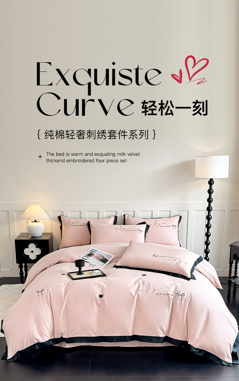 理想家家纺 2025新款纯棉轻奢刺绣四件套-小秘密系列 小秘密-粉