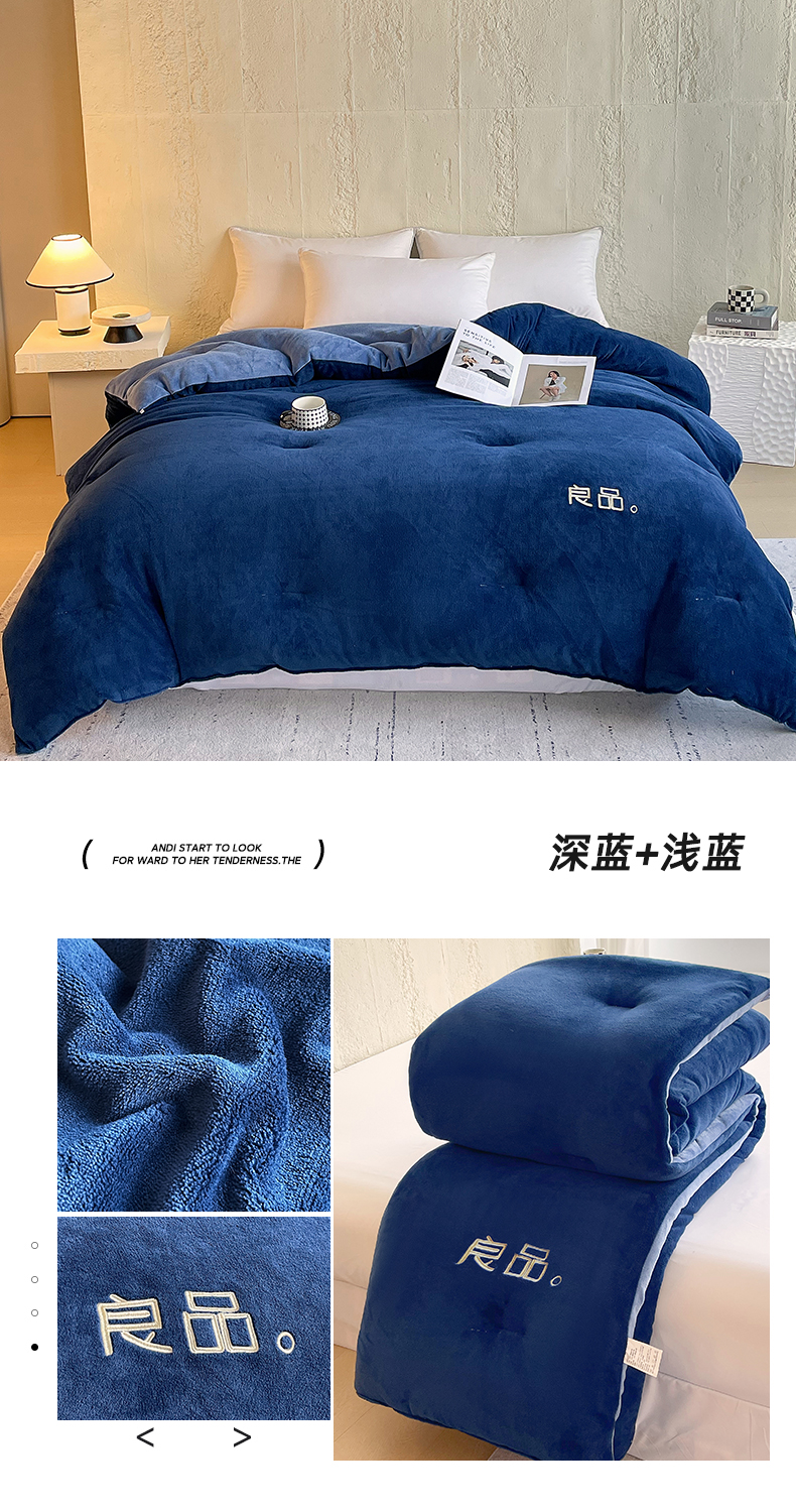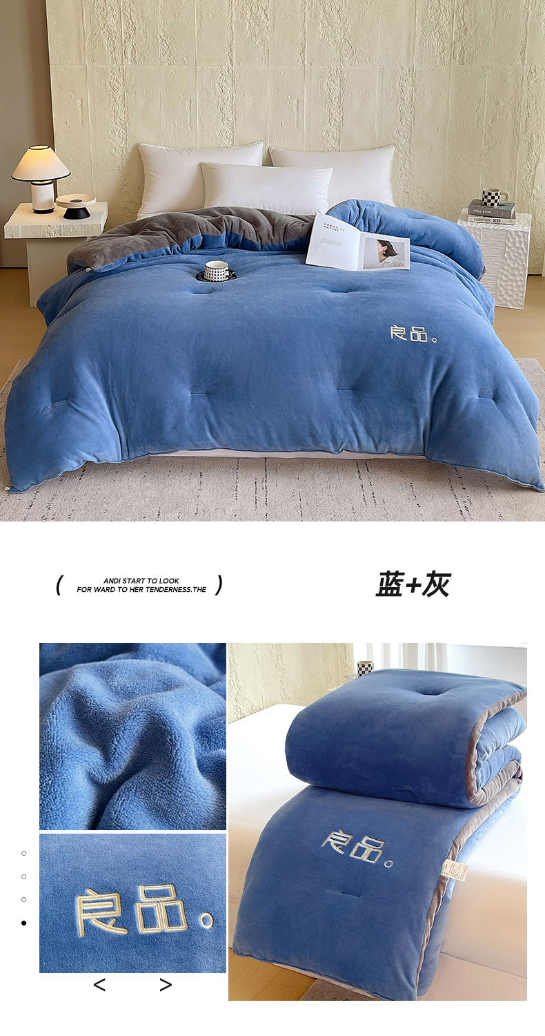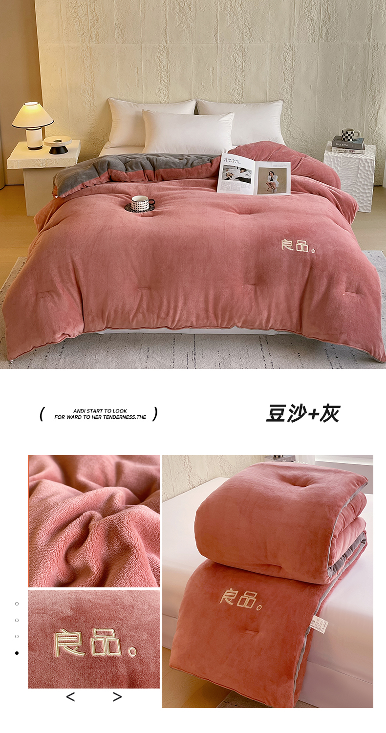 (总)云家 2025新款双面牛奶绒刺绣冬被跨境被子外贸冬季被芯,白+橙,豆沙+灰,灰+驼,卡其,蓝+灰,深蓝+浅蓝