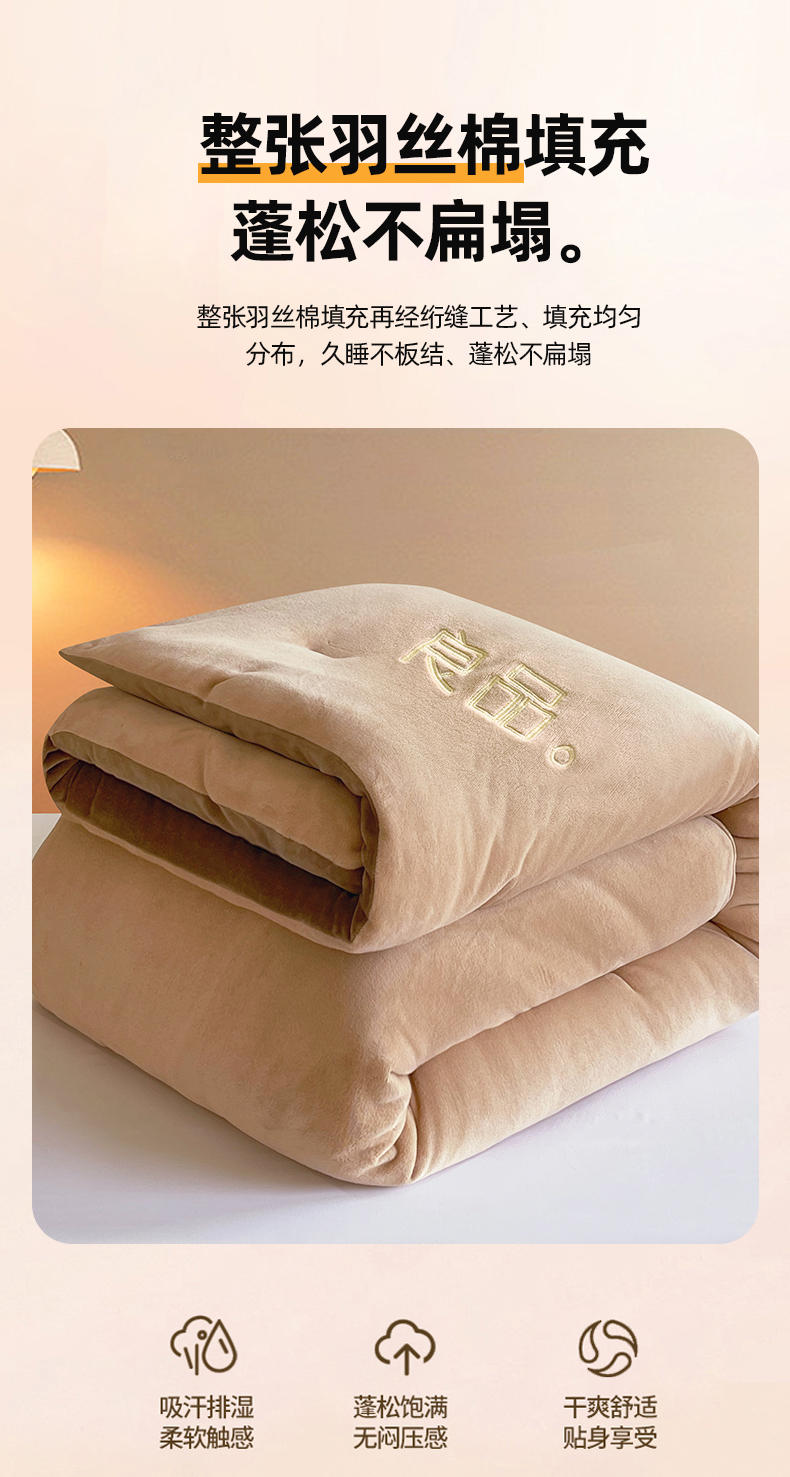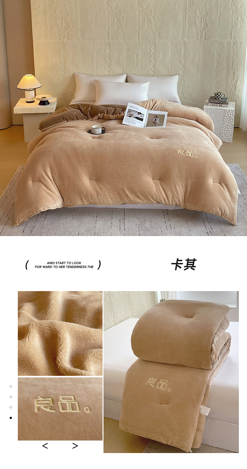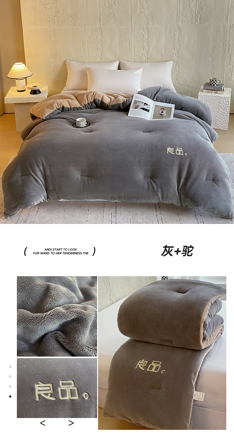 商品名称:云家 2025新款双面牛奶绒刺绣冬被跨境被子外贸冬季被芯 灰+驼