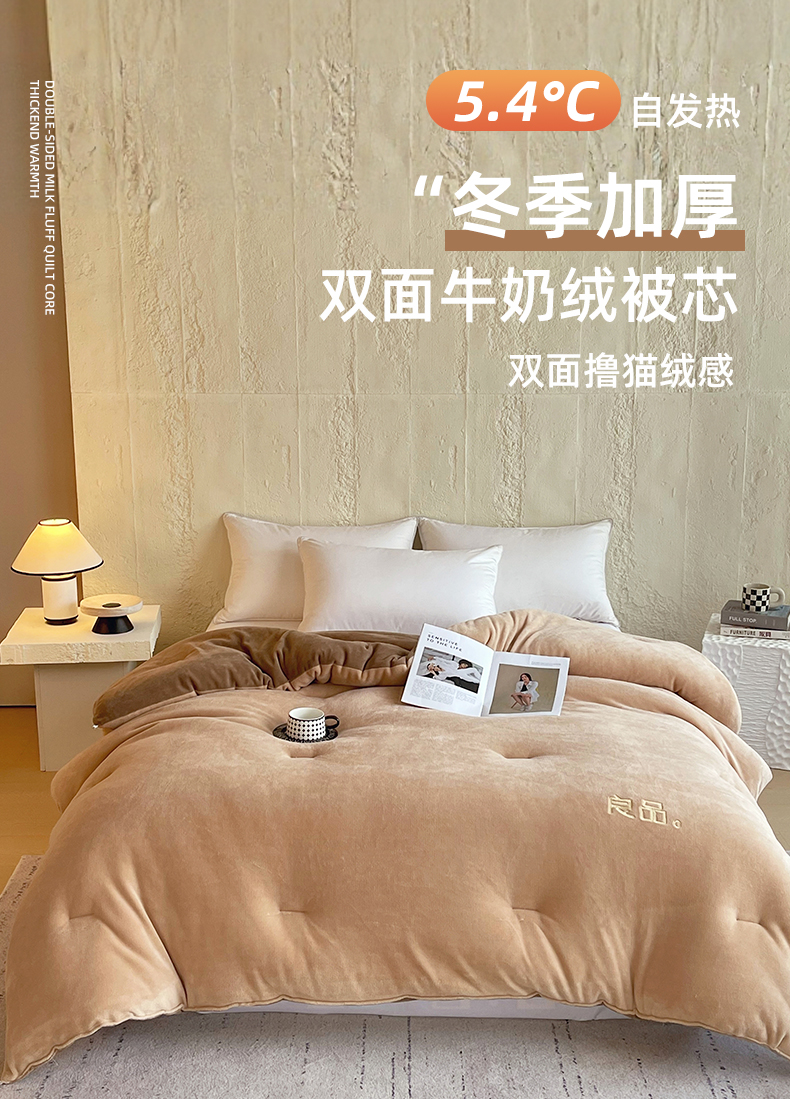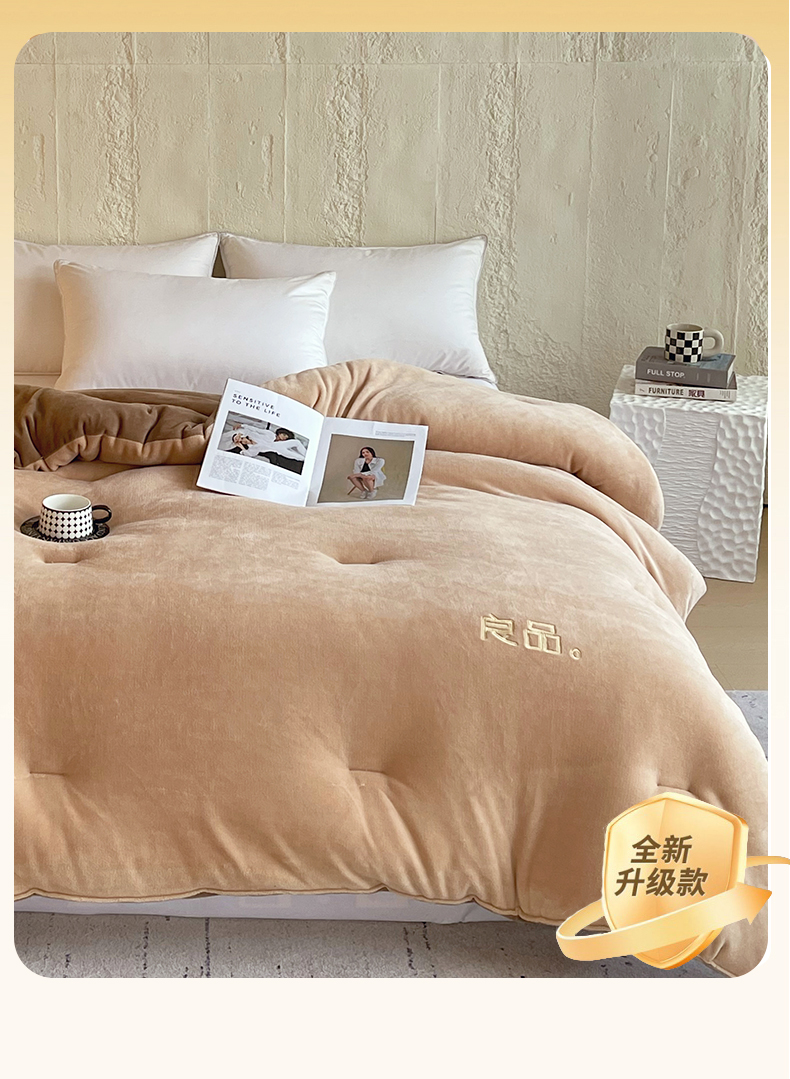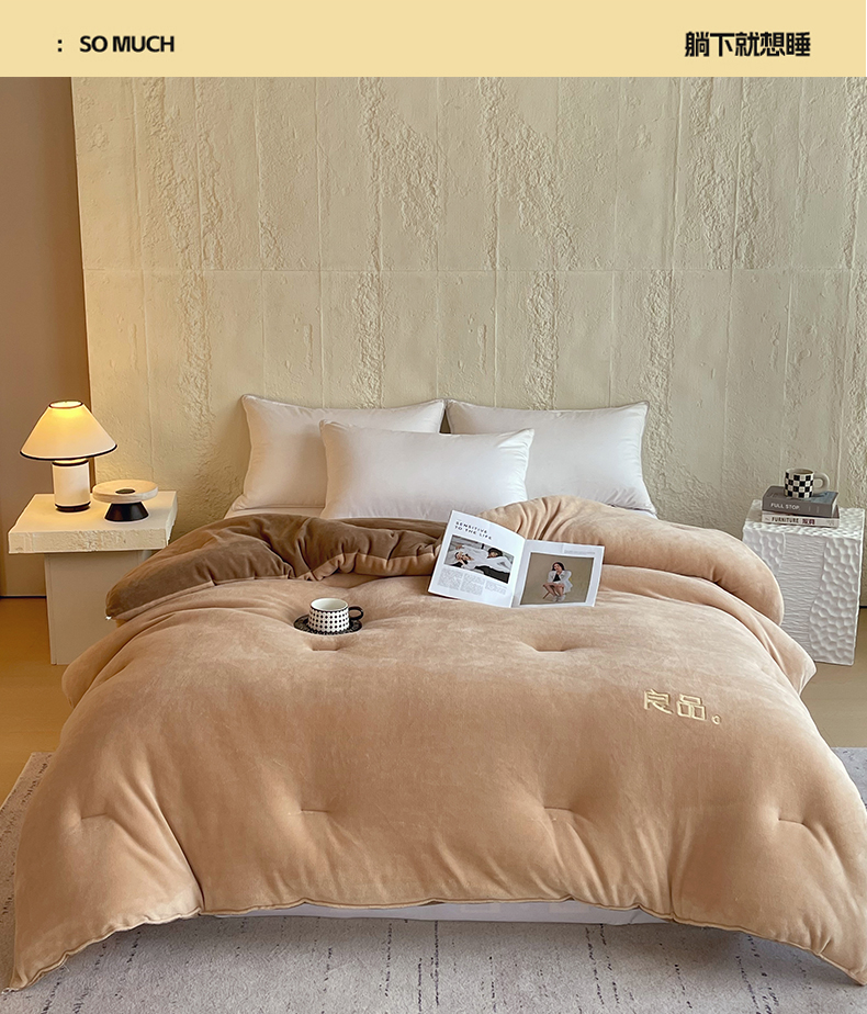 云家 2025新款双面牛奶绒刺绣冬被跨境被子外贸冬季被芯 灰+驼