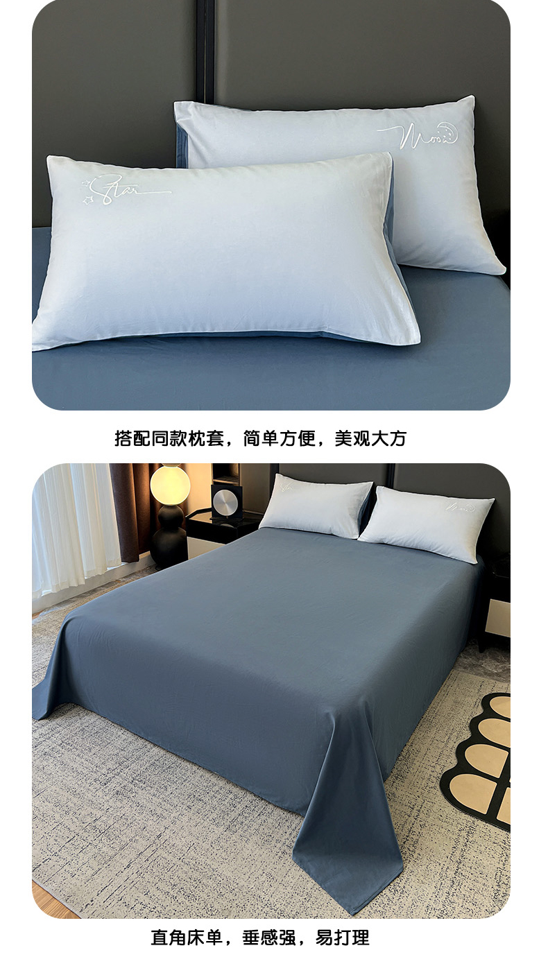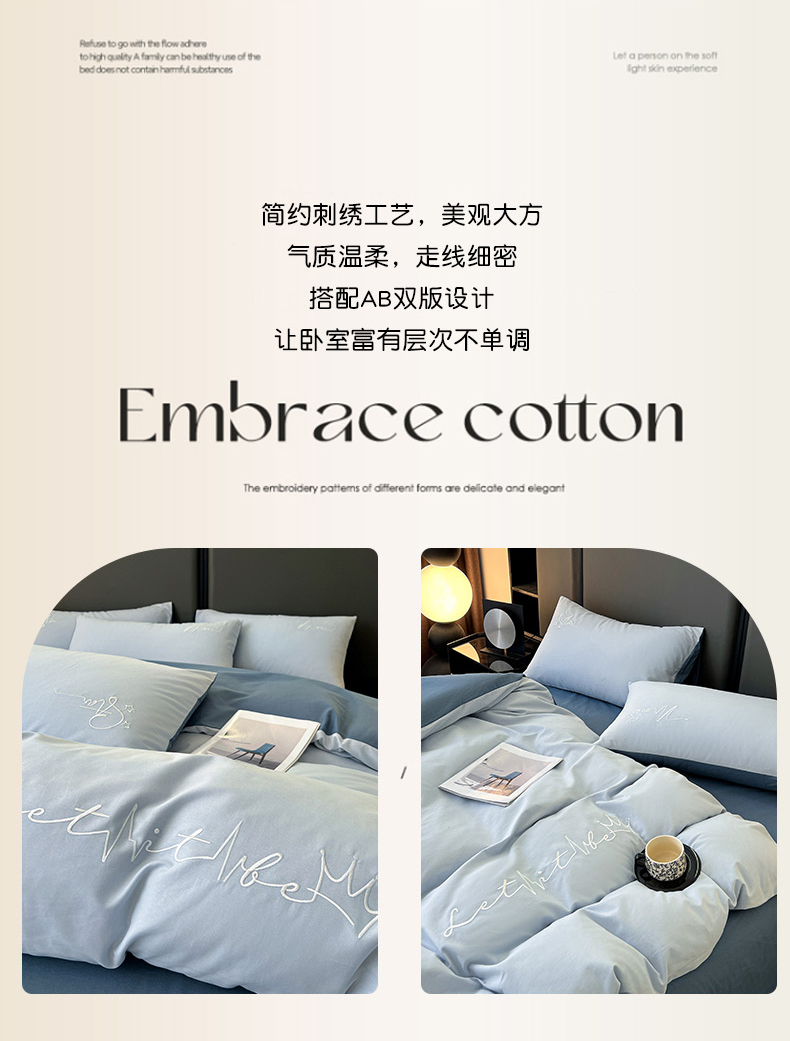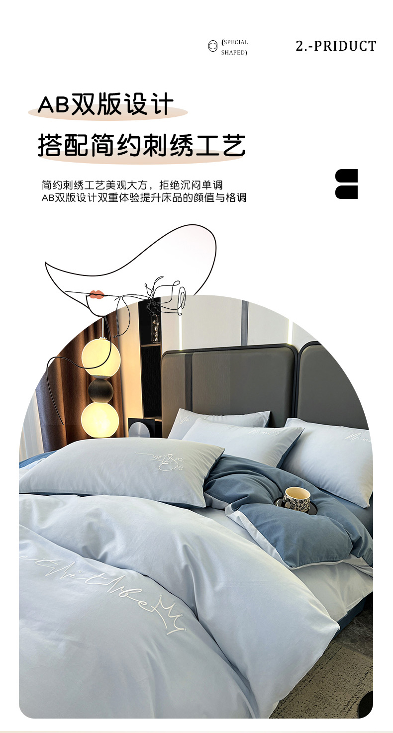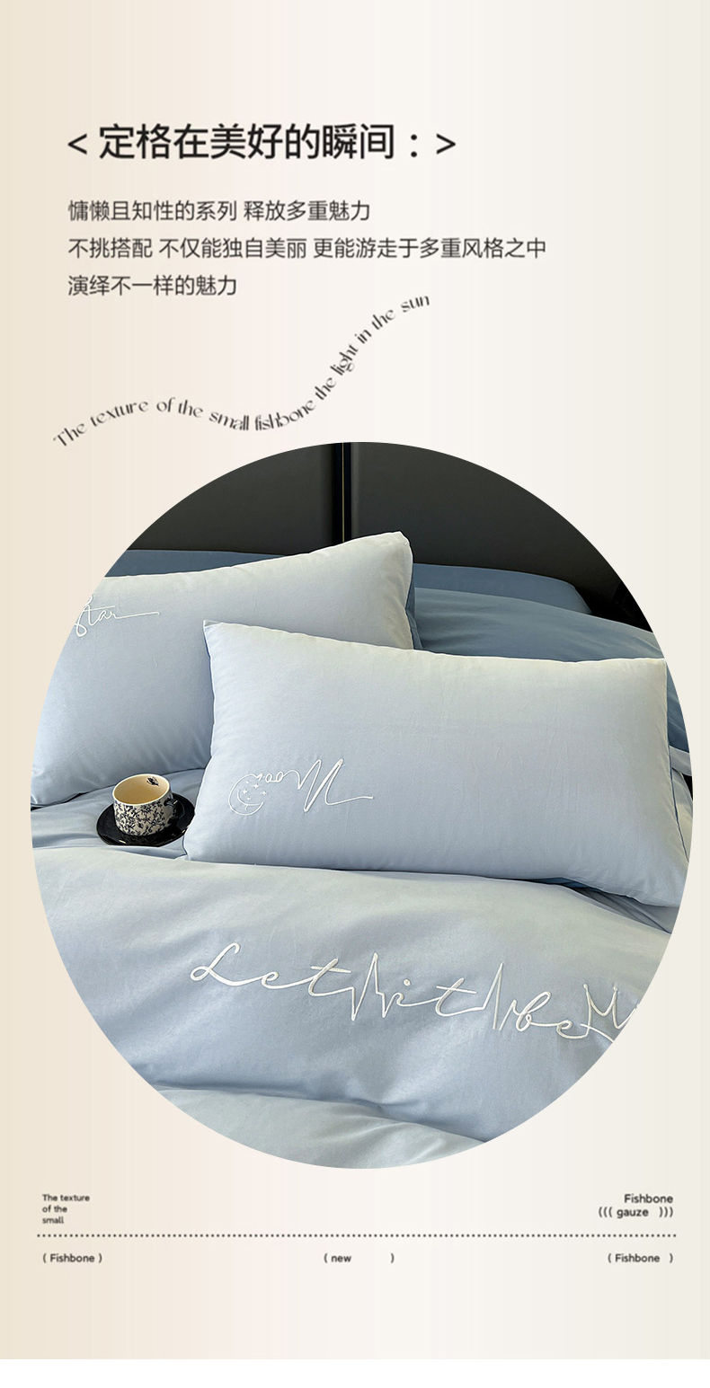 商品名称:有点武功 2025新款全棉纯色刺绣磨毛四件套(控价每个尺寸+30元) 浅蓝青