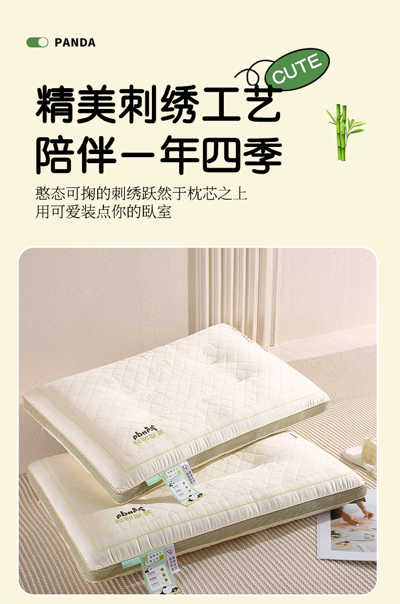 商品名称:金牛枕芯 2025新款熊猫呼呼乳胶夹层儿童成人枕头枕芯 熊猫趴趴-绿