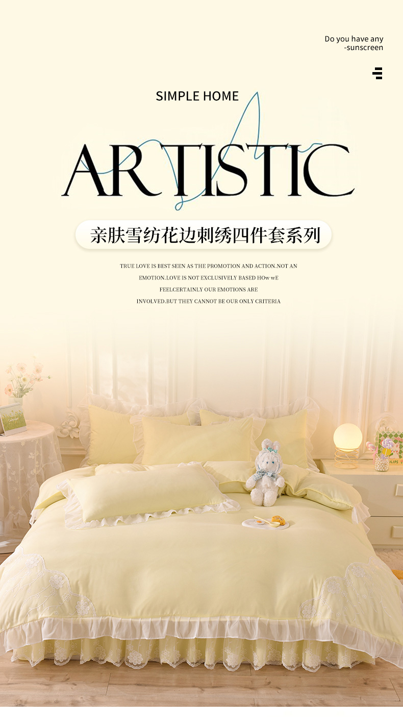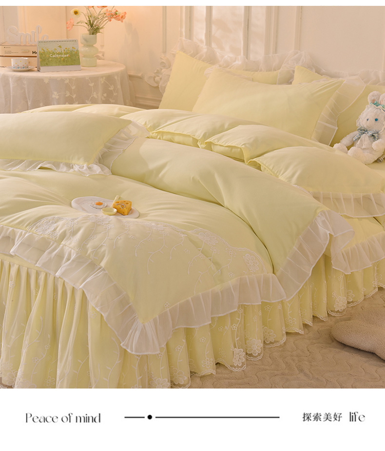 后庭寝室 2025新款亲肤雪纺花边刺绣蕾丝公主四件套-花香系列 花香-浅果绿