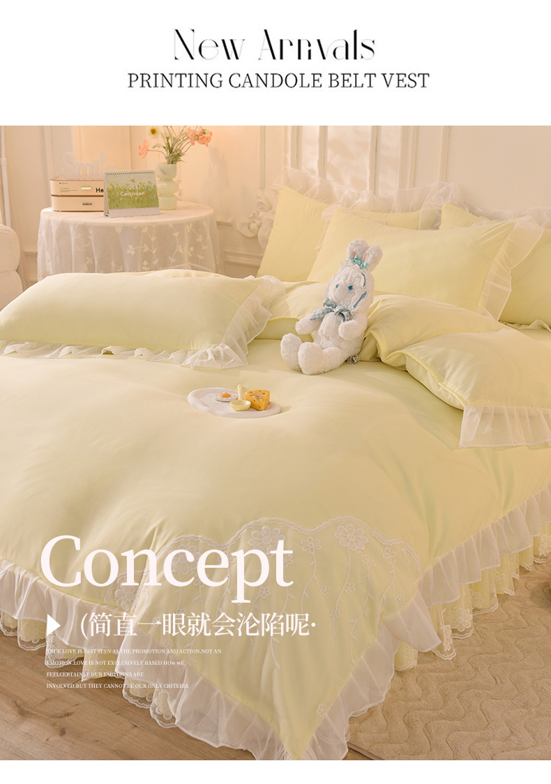 (总)后庭寝室 2025新款高克重牛奶绒公主风床裙四件套-甜心系列,甜心-粉玉,甜心-嫩黄,甜心-浅粉,甜心-浅蓝,甜心-浅紫,甜心-玉色