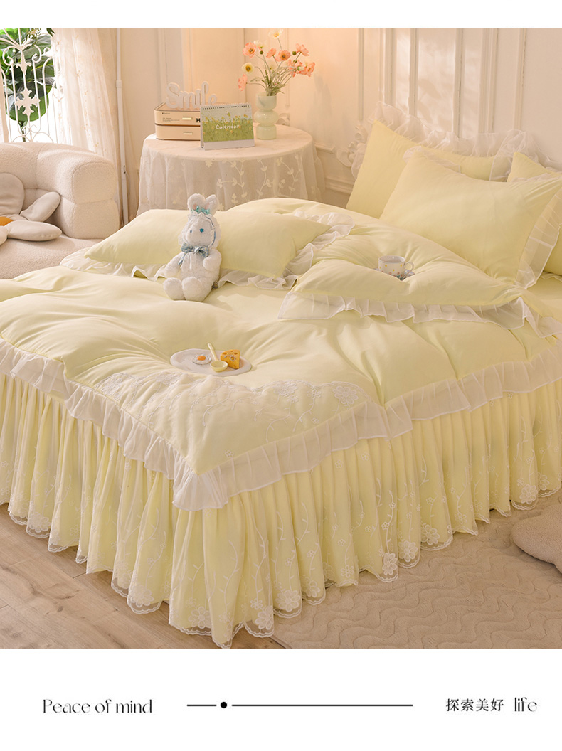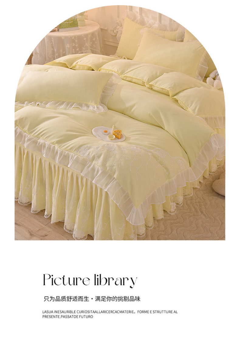 (总)后庭寝室 2025新款牛奶绒花边床裙四件套-浪漫花语系列,浪漫花语-暖黄,浪漫花语-公主玉,浪漫花语-梦幻紫,浪漫花语-暖粉玉,浪漫花语-少女粉,浪漫花语-天空蓝