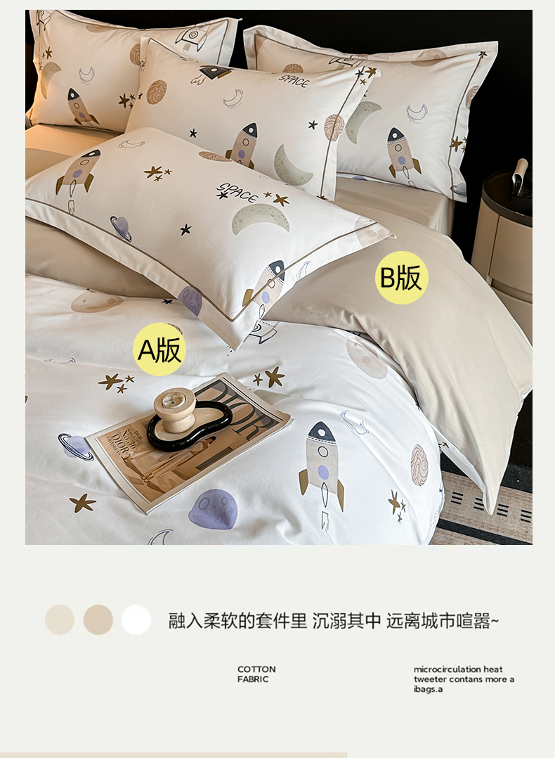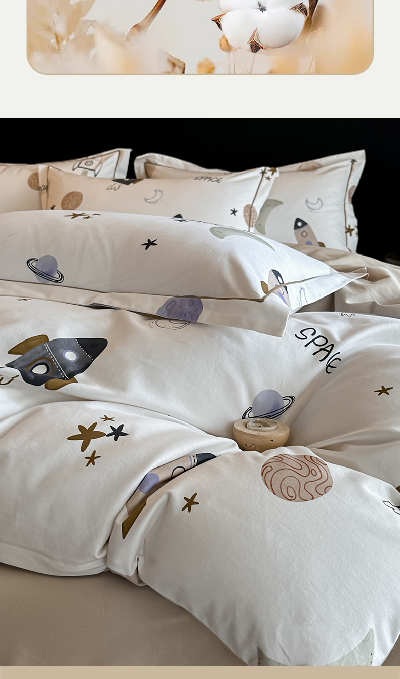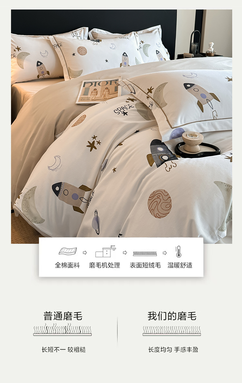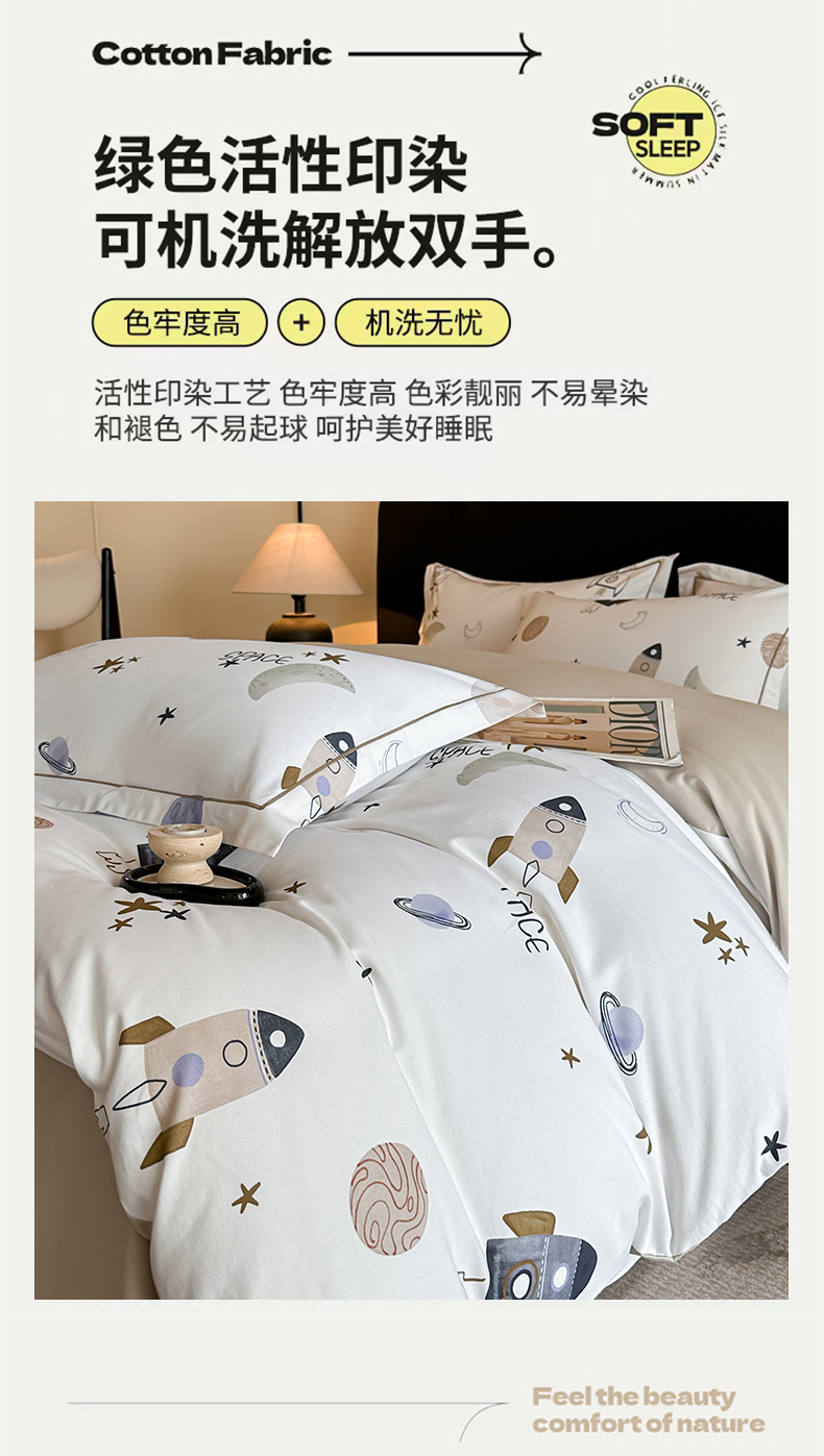 当前位置: 91家纺网 > 商品网购 > 床品套件 > 四件套 > 全棉普通四件套 > 大柏树 2025新款全棉磨毛印花四件套系列(可定制) 遨游太空