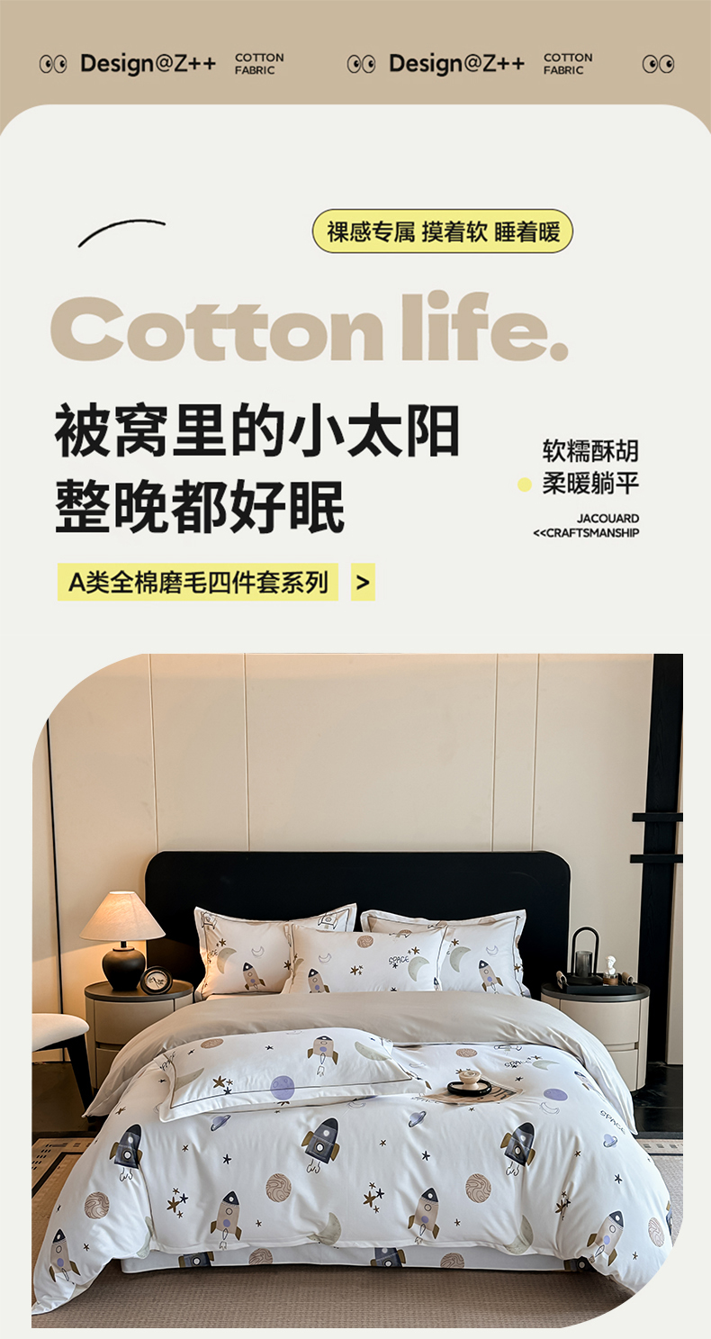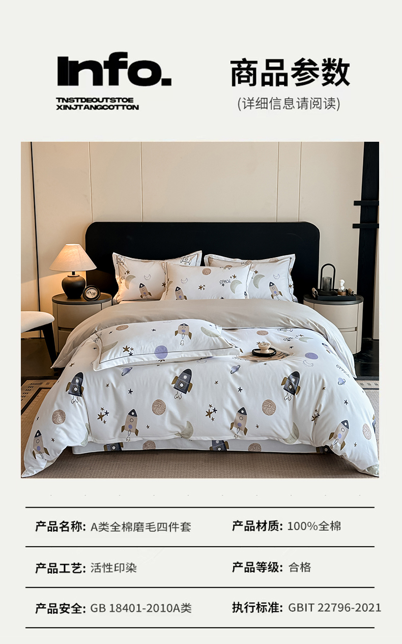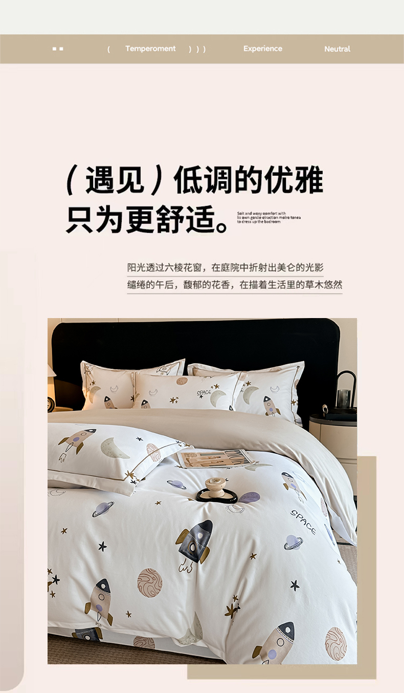 当前位置: 91家纺网 > 商品网购 > 床品套件 > 四件套 > 全棉普通四件套 > 大柏树 2025新款全棉磨毛印花四件套系列(可定制) 遨游太空