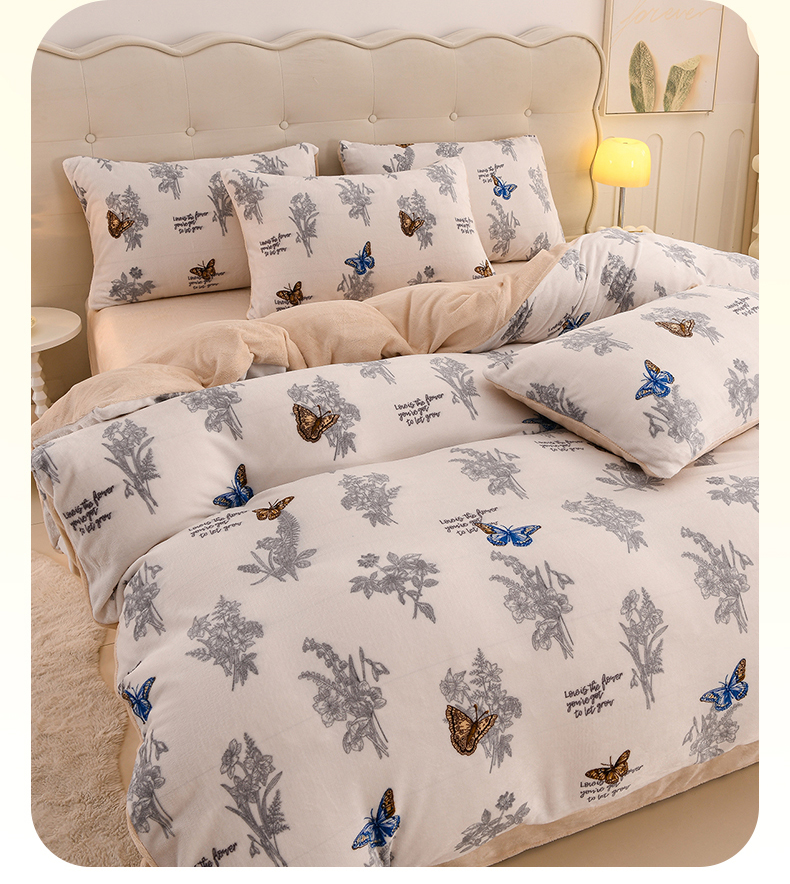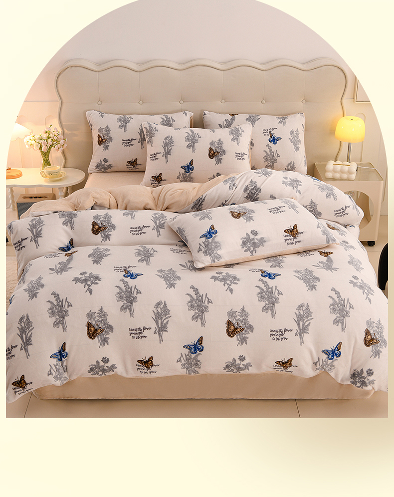紫月轩家纺 2025新款A类牛奶绒小清新印花四件套 田园蝶梦