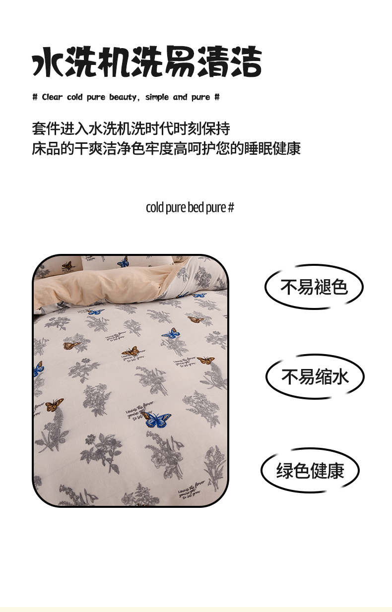 商品名称:紫月轩家纺 2025新款A类牛奶绒小清新印花四件套 田园蝶梦