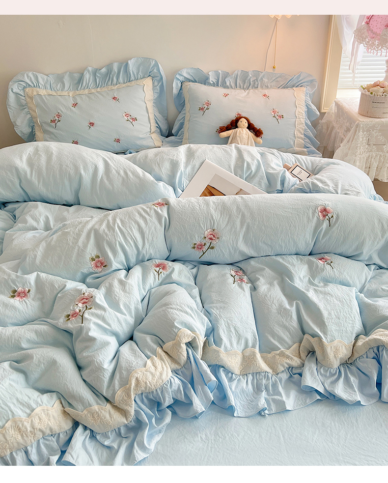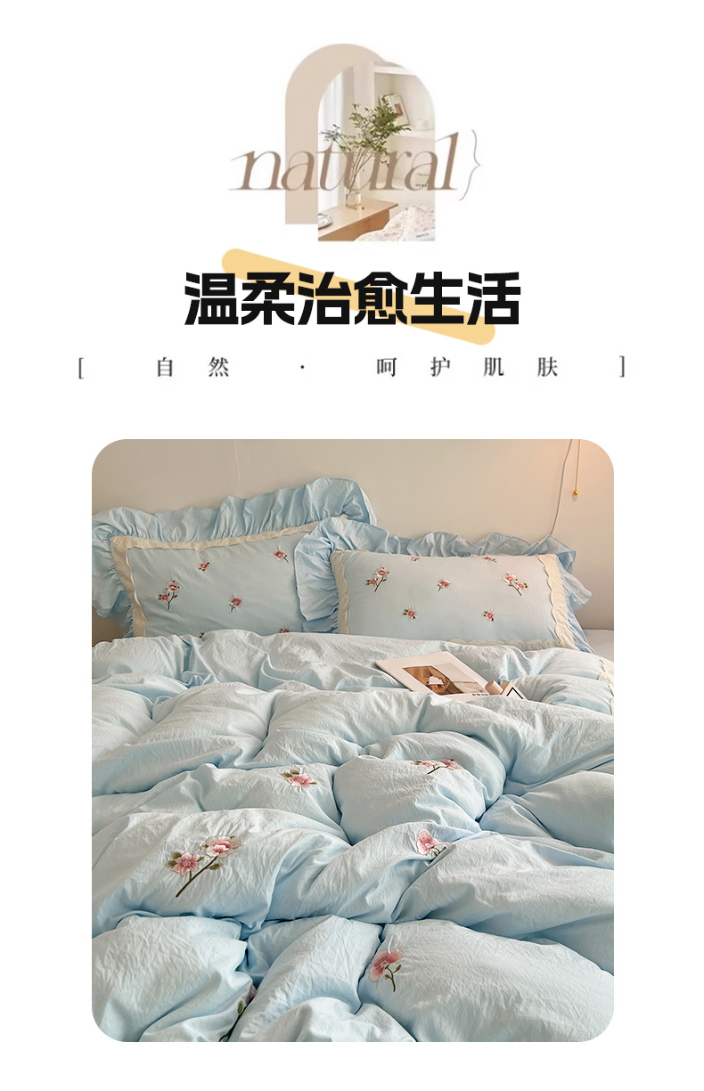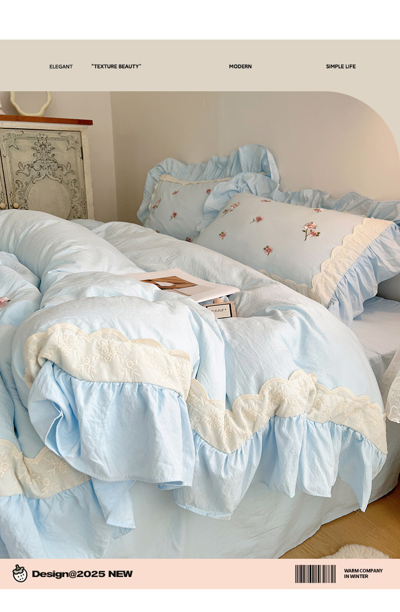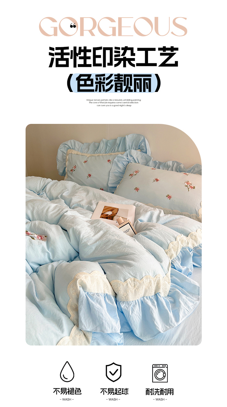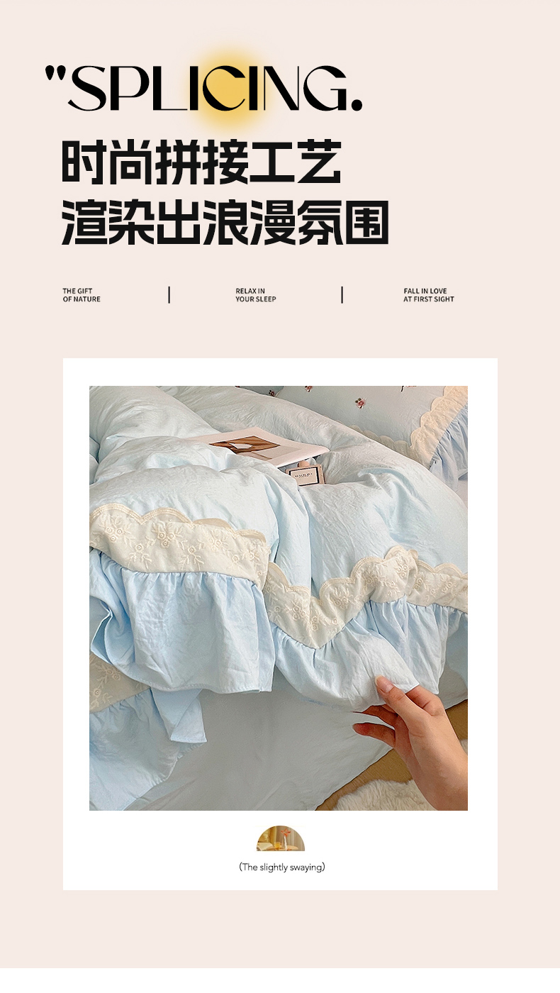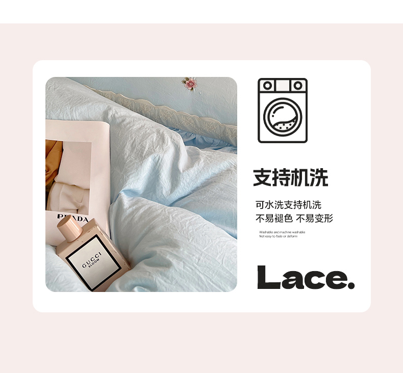 轻奢坊 2025新款水洗棉法式刺绣大花边四件套-芬芳玫瑰 芬芳玫瑰-柔粉