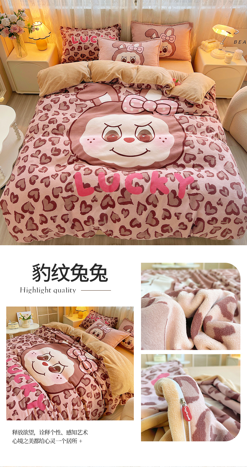 (总)炫拼家纺 2025新款大版数码印花卡通高克重牛奶绒四件套,乔治汪汪,快乐小象,熊和兔,啵啵熊,扭扭狗,苹果狗,豹纹兔兔,泡泡狗,搞怪兔兔,向钱看,元气企鹅