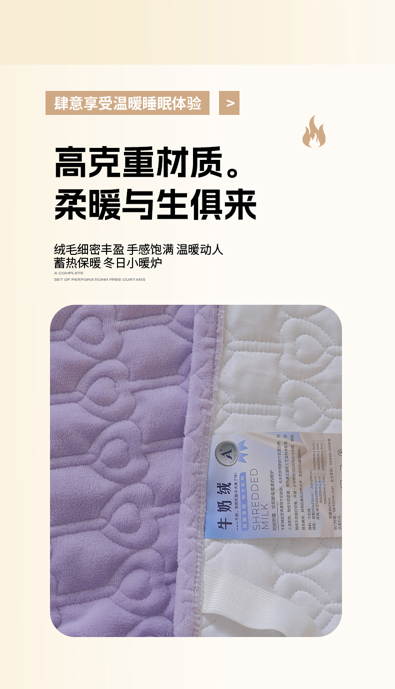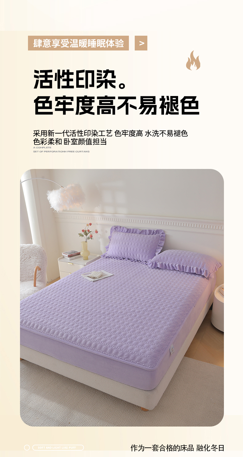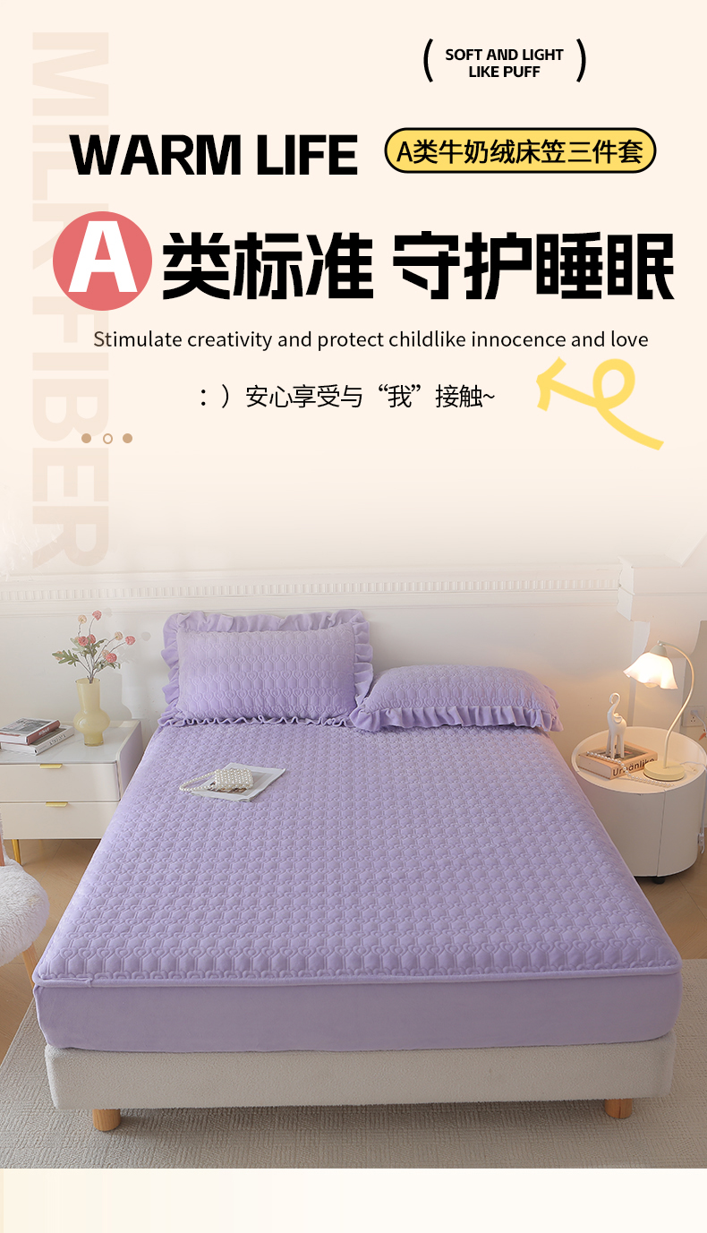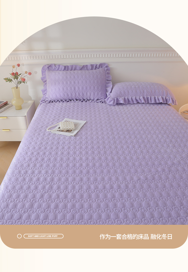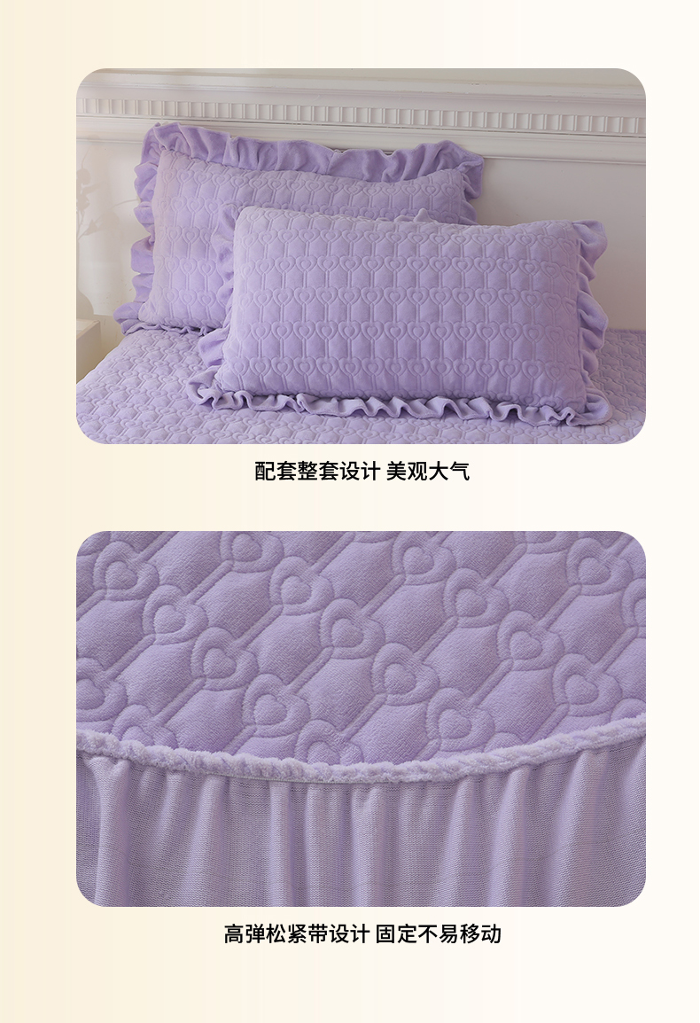 当前位置: 91家纺网 > 商品网购 > 床品套件 > 三件套 > 怡源梦 2025新款A类牛奶绒夹棉床笠三件套-甜心公主系列 紫色